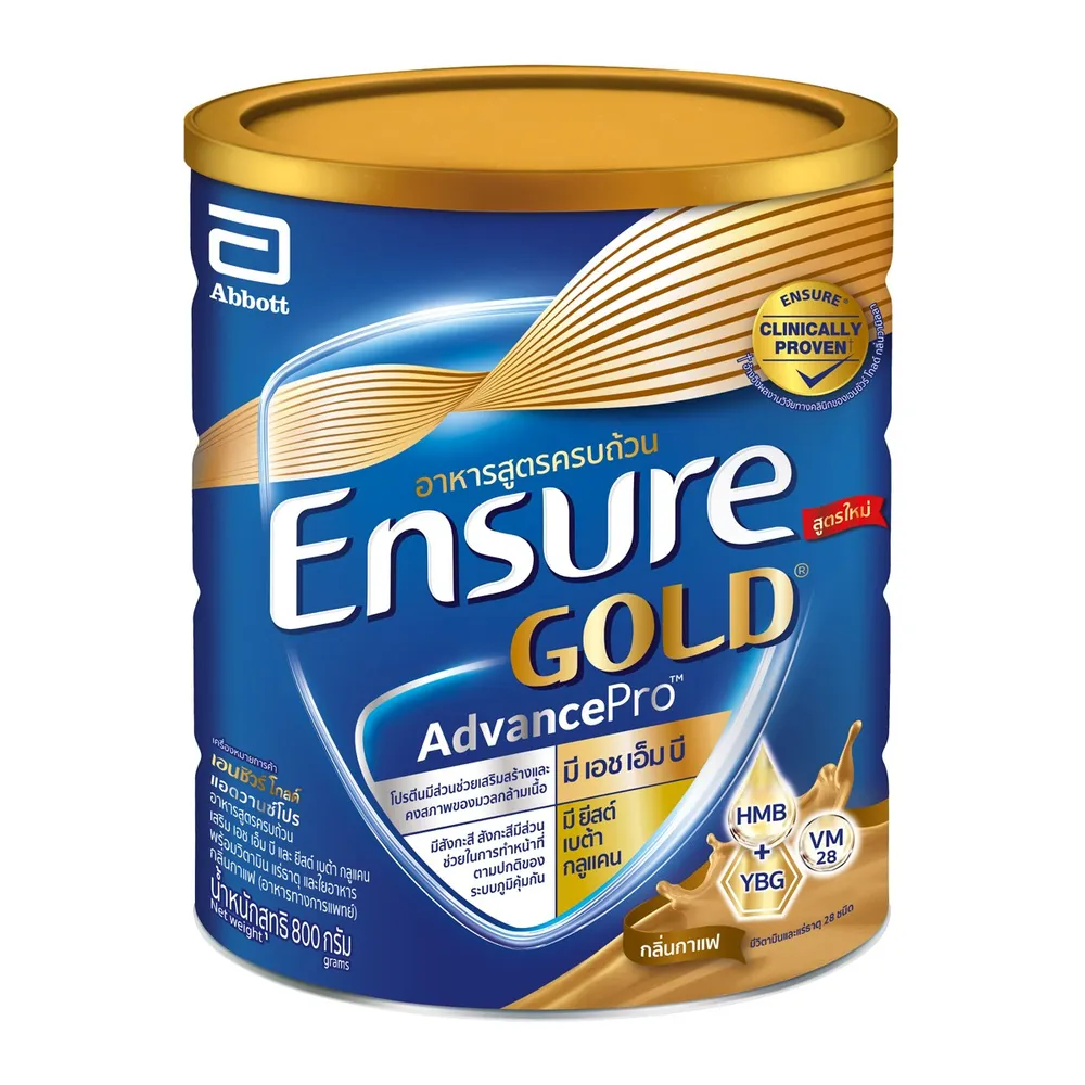 เอนชัวร์ โกลด์ อาหารสูตรครบถ้วน เอชเอ็มบี พร้อมวิตามิน แร่ธาตุ และใยอาหาร กลิ่นกาแฟ อาหารสูตรครบถ้วน มีส่วนผสมของ HMB ที่ให้สารอาหารที่ร่างกายต้องการ พร้อมวิตามิน แร่ธาตุ และใยอาหาร ช่วยให้ร่างกายแข็งแรง<br />