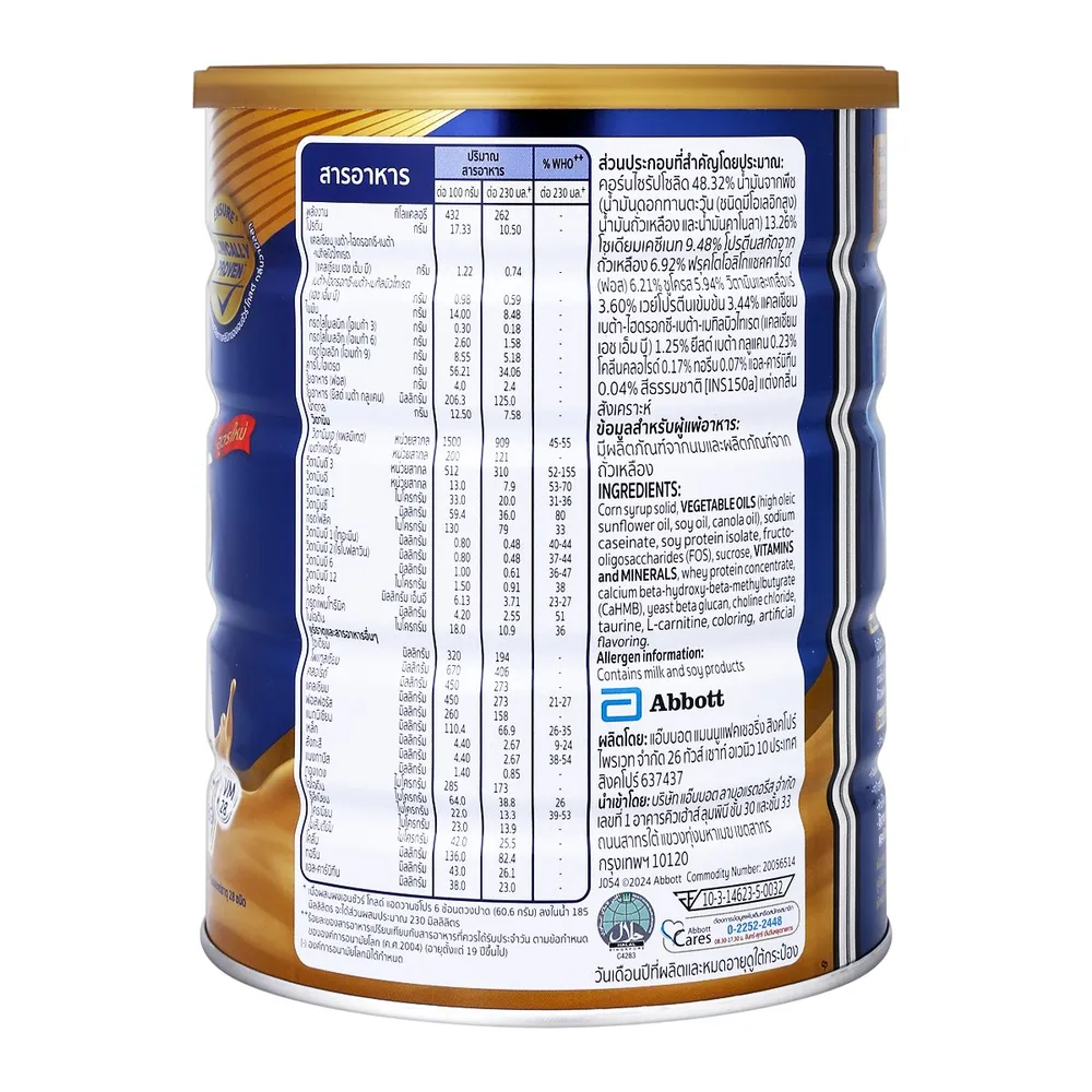 - ประกอบด้วยโปรตีน สูงขึ้น 23% 3 ชนิด เวย์ เคซีน และโปรตีนสกัดจากถั่วเหลือง (โปรตีนมีส่วนช่วยเสริมสร้างและคงสภาพของมวลกล้ามเนื้อ<br />