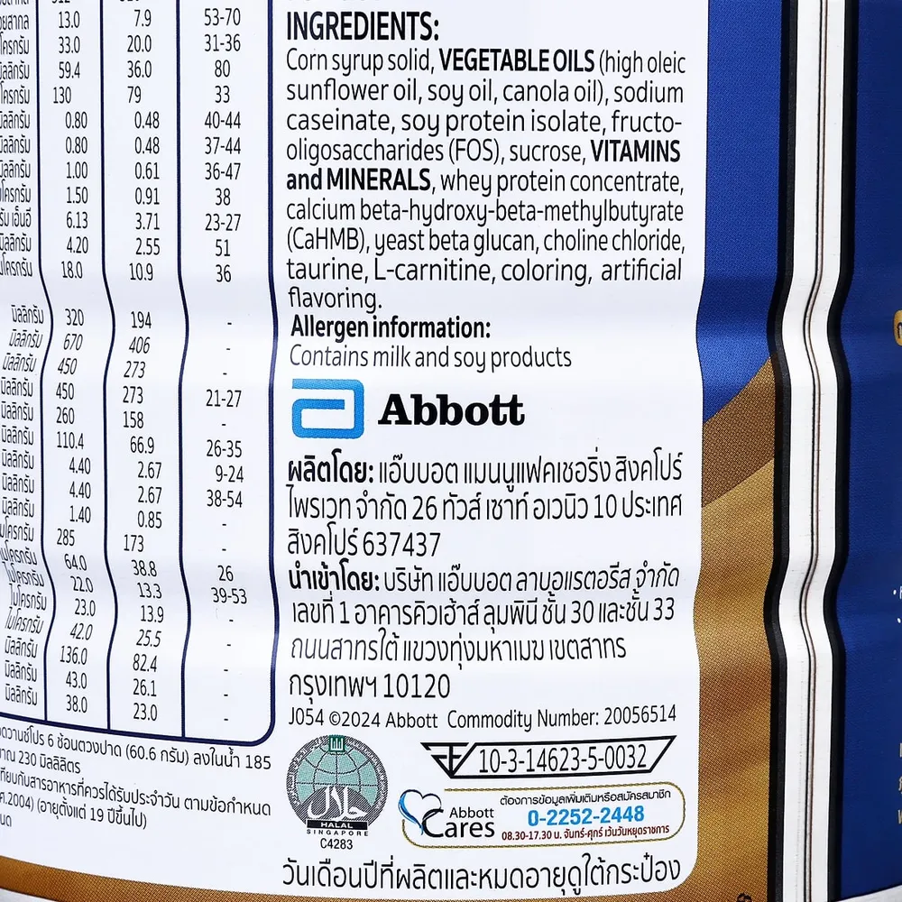 - ให้พลังงาน 262 กิโลแคลอรี่ / 185 มล. เมื่อผสมตามสูตร<br />