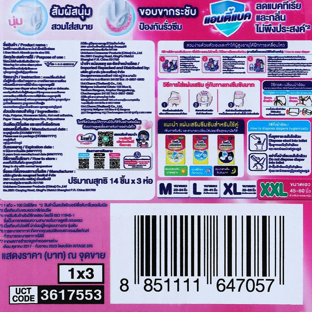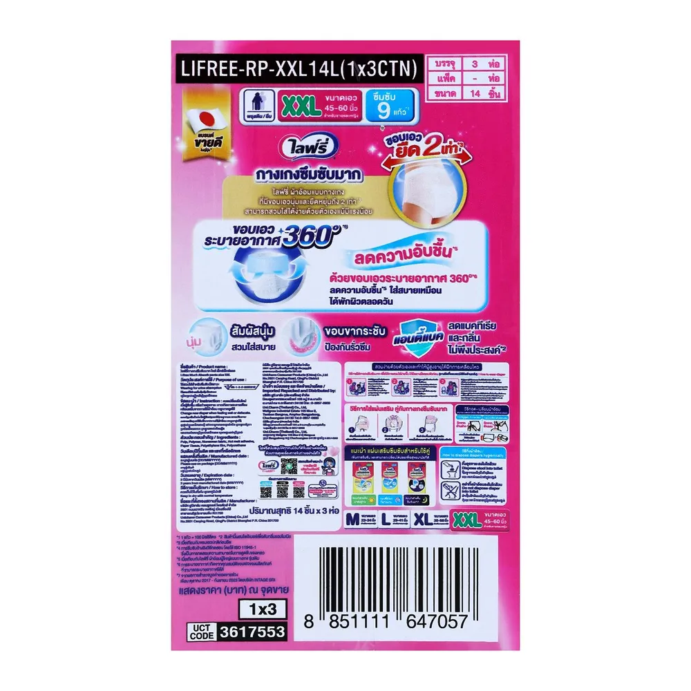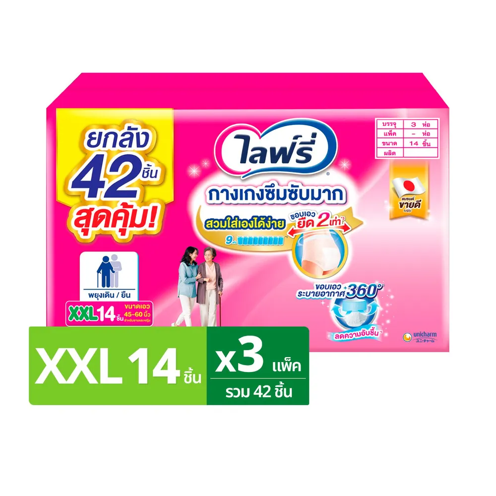 ไลฟ์รี่ กางเกงซึมซับมาก ขนาด XXL 14 ชิ้น x 3 แพ็ค