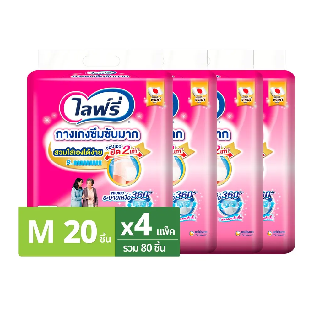 ไลฟ์รี่ กางเกงซึมซับมาก ขนาด M 20 ชิ้น x 4 แพ็ค