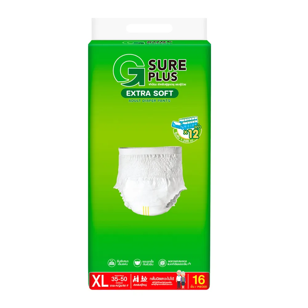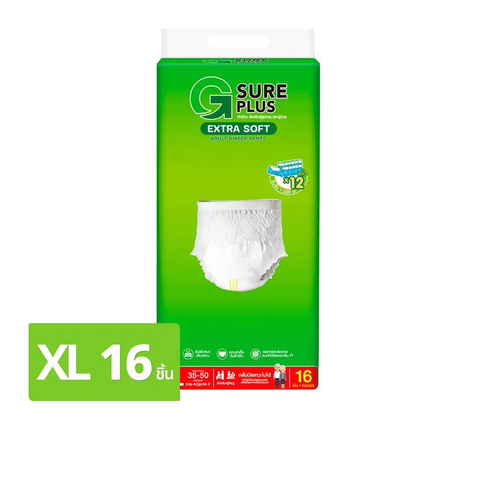 จีชัวร์ พลัส ผ้าอ้อมผู้ใหญ่ แอ็กซ์ตร้าซอฟ เพ้นท์ ไซส์ XL 16 ชิ้น