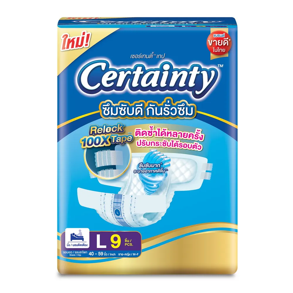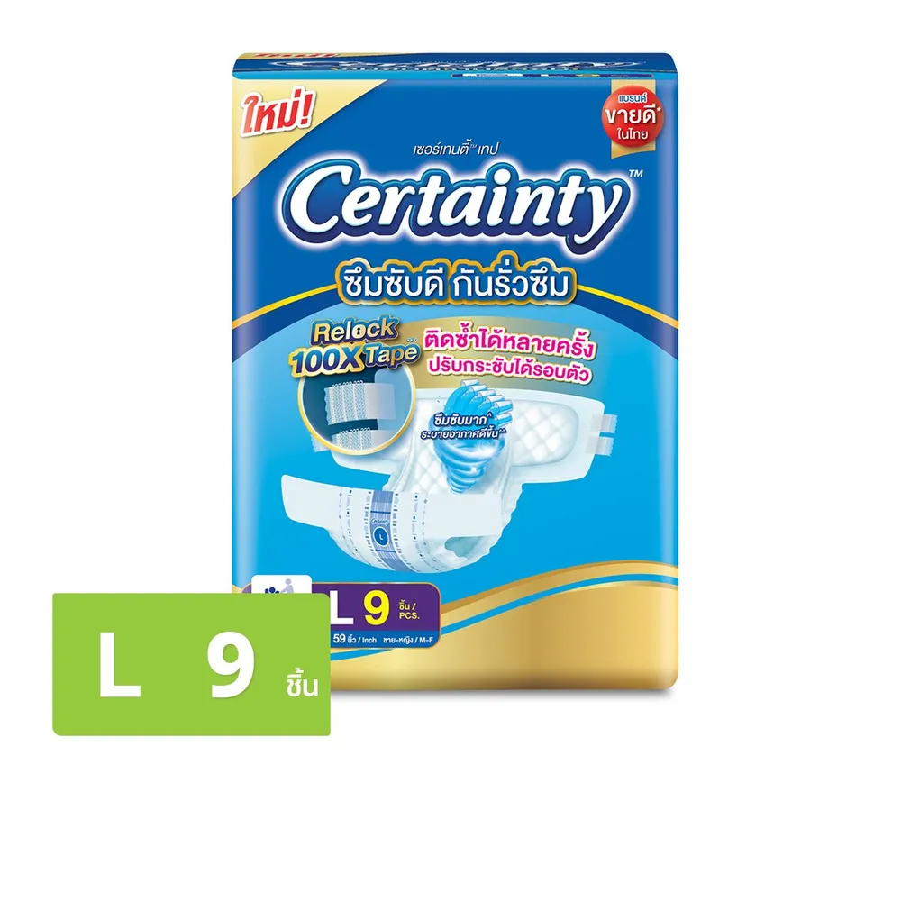 เซอร์เทนตี้ ผ้าอ้อมผู้ใหญ่แบบเทป รุ่นธรรมดา ขนาด L 9 ชิ้น
