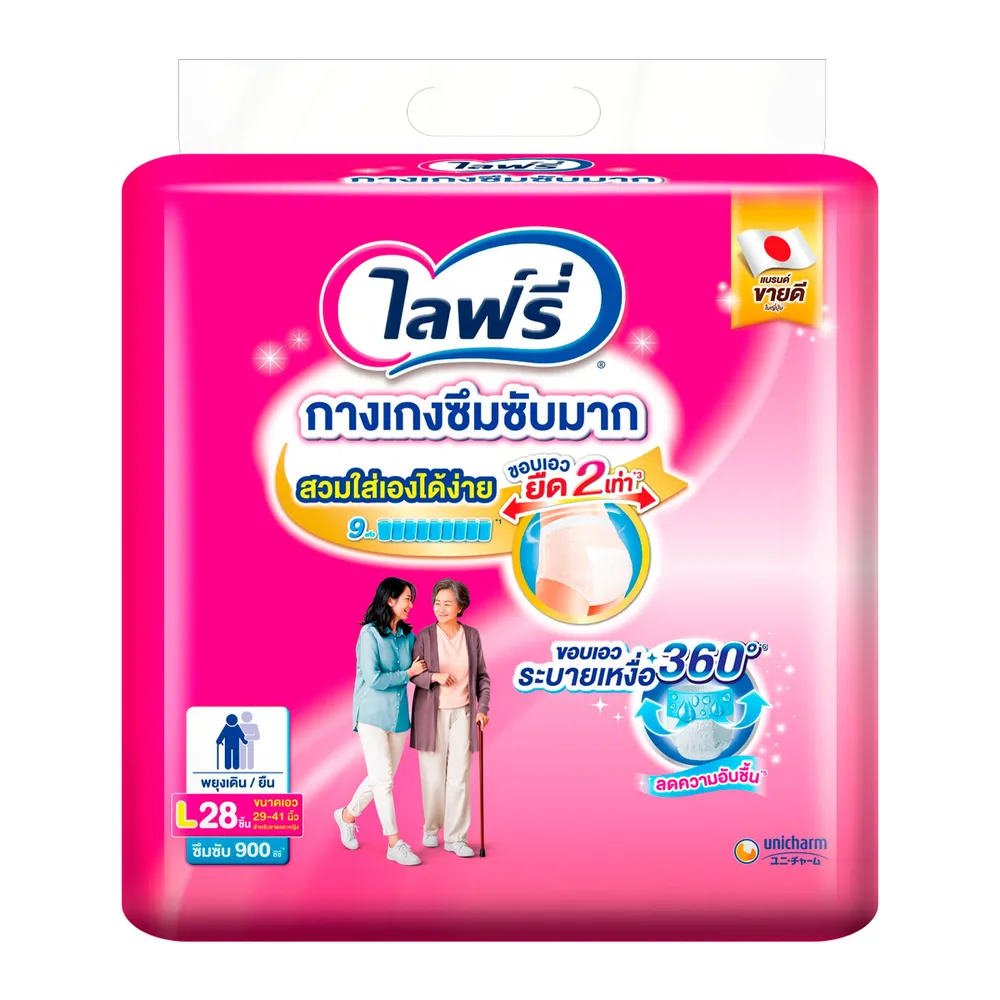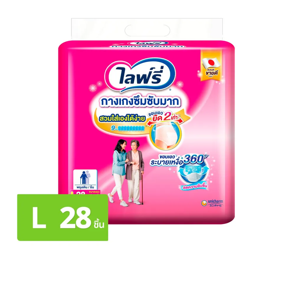 ไลฟ์รี่ กางเกงซึมซับมาก ไซส์ L ขนาด 29-41 นิ้ว x 28 ชิ้น