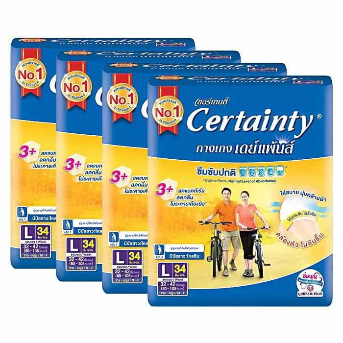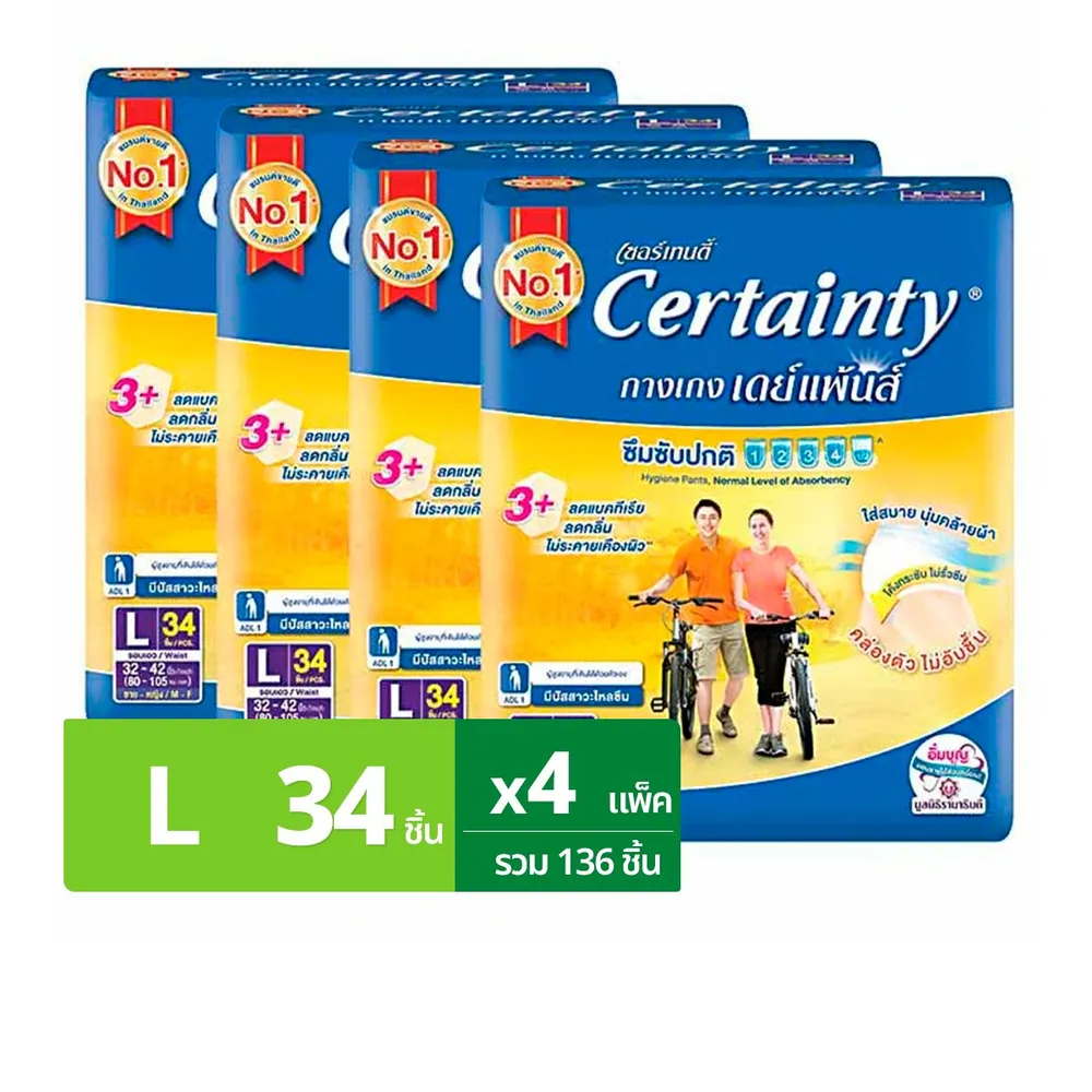 เซอร์เทนตี้ เดย์แพ้นส์ กางเกงผ้าอ้อมผู้ใหญ่ ขนาด L 34 ชิ้น x 4 แพ็ค