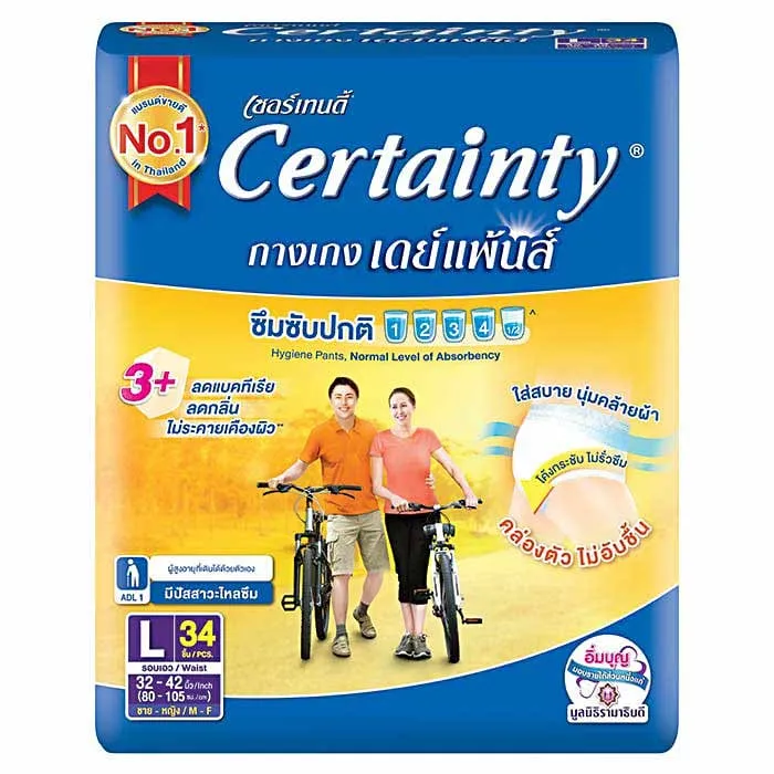 <p>เซอร์เทนตี้ เดย์แพ้นส์ กางเกงผ้าอ้อมผู้ใหญ่ ขนาด L 34 ชิ้น<br />