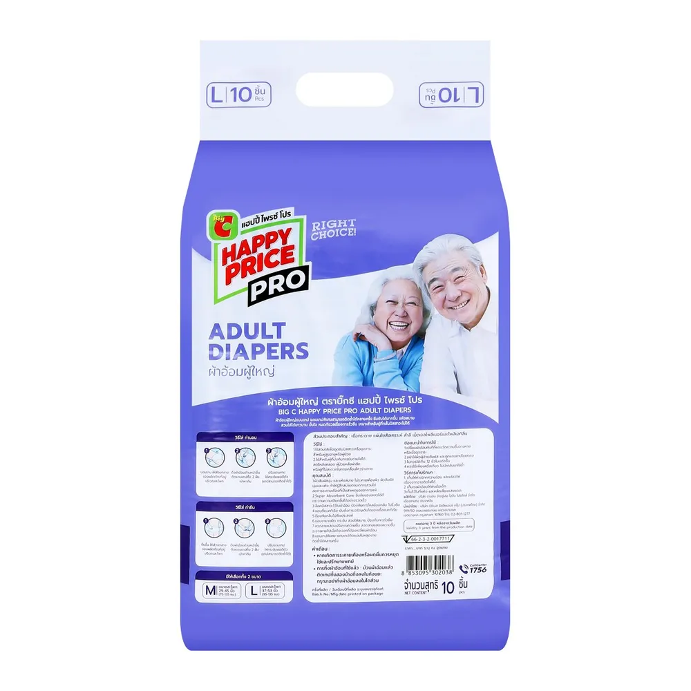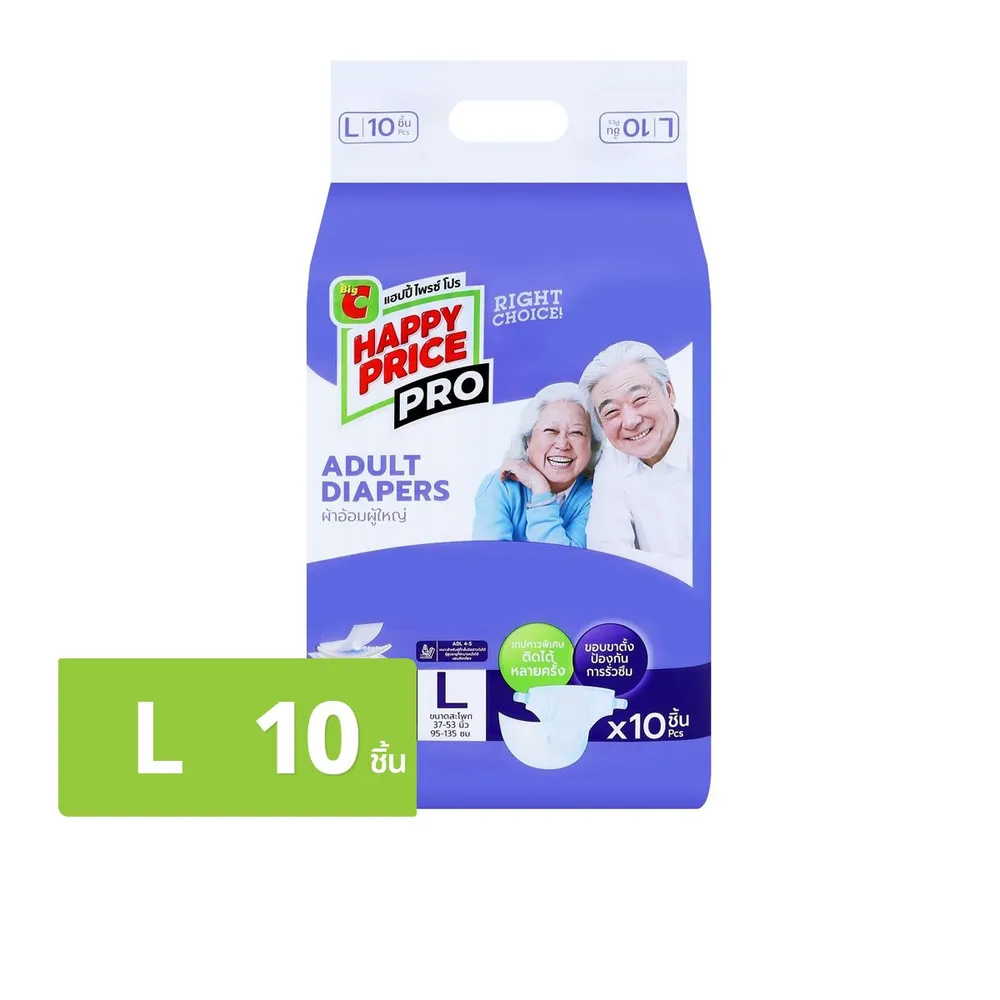 บิ๊กซี แฮปปี้ ไพรซ์ โปร ผ้าอ้อมผู้ใหญ่ ไซส์ L แพ็ค 10 ชิ้น