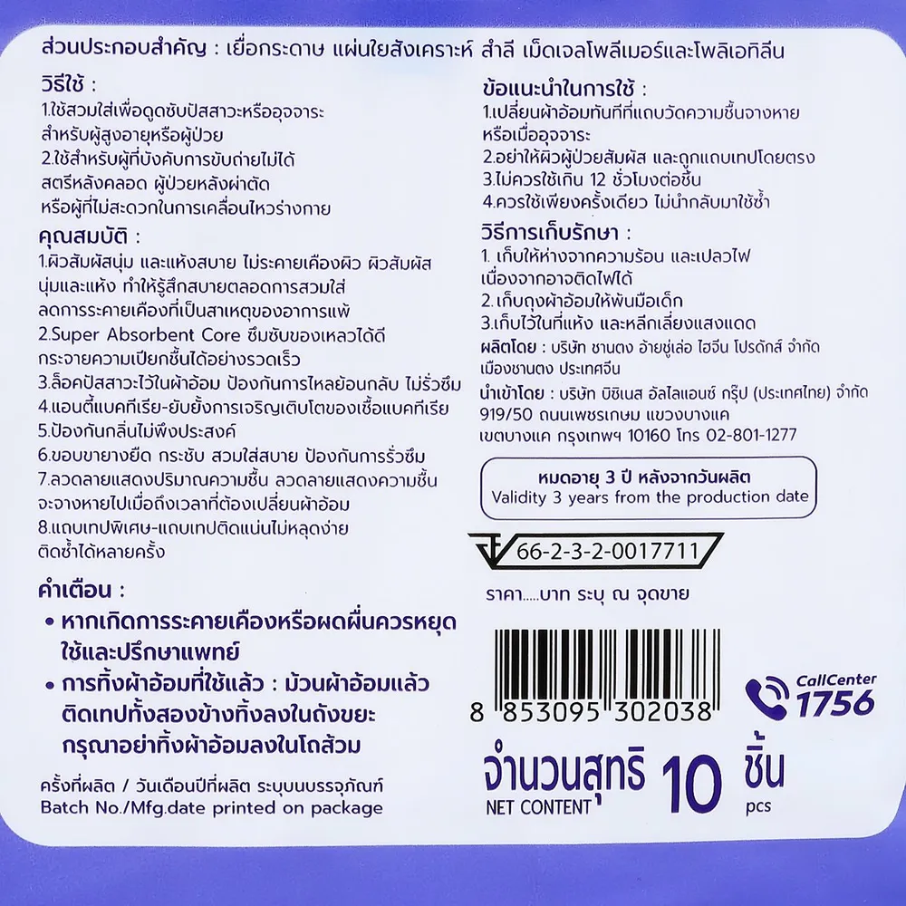 1. ใช้สวมใส่เพื่อดูดซับปัสสาวะหรืออุจจาระสำหรับผู้สูงอายุหรือผู้ป่วย<br />