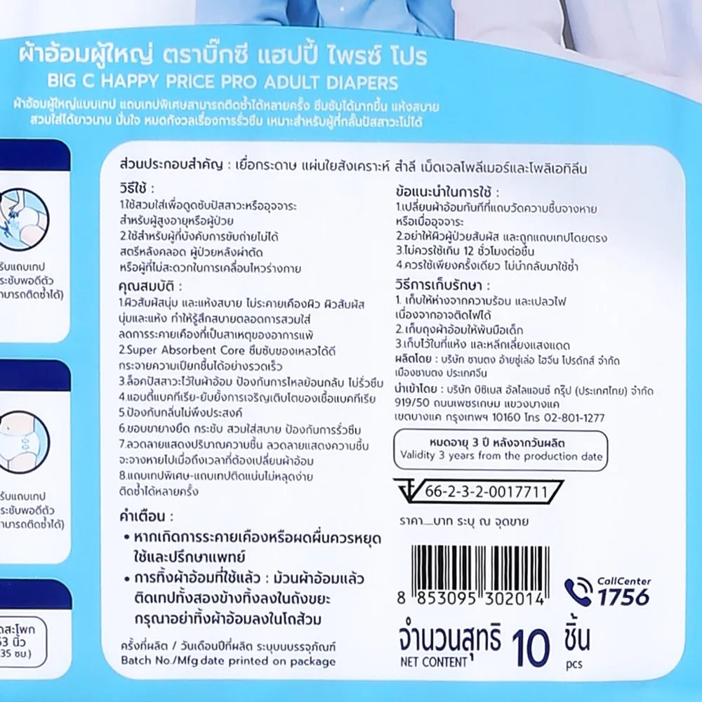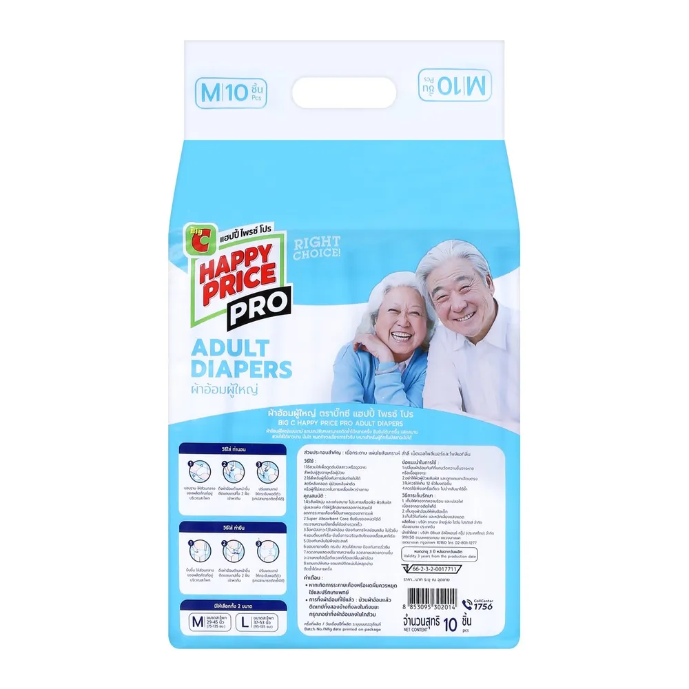 บิ๊กซี แฮปปี้ ไพรซ์ โปร ผ้าอ้อมผู้ใหญ่ ไซส์ M แพ็ค 10 ชิ้น