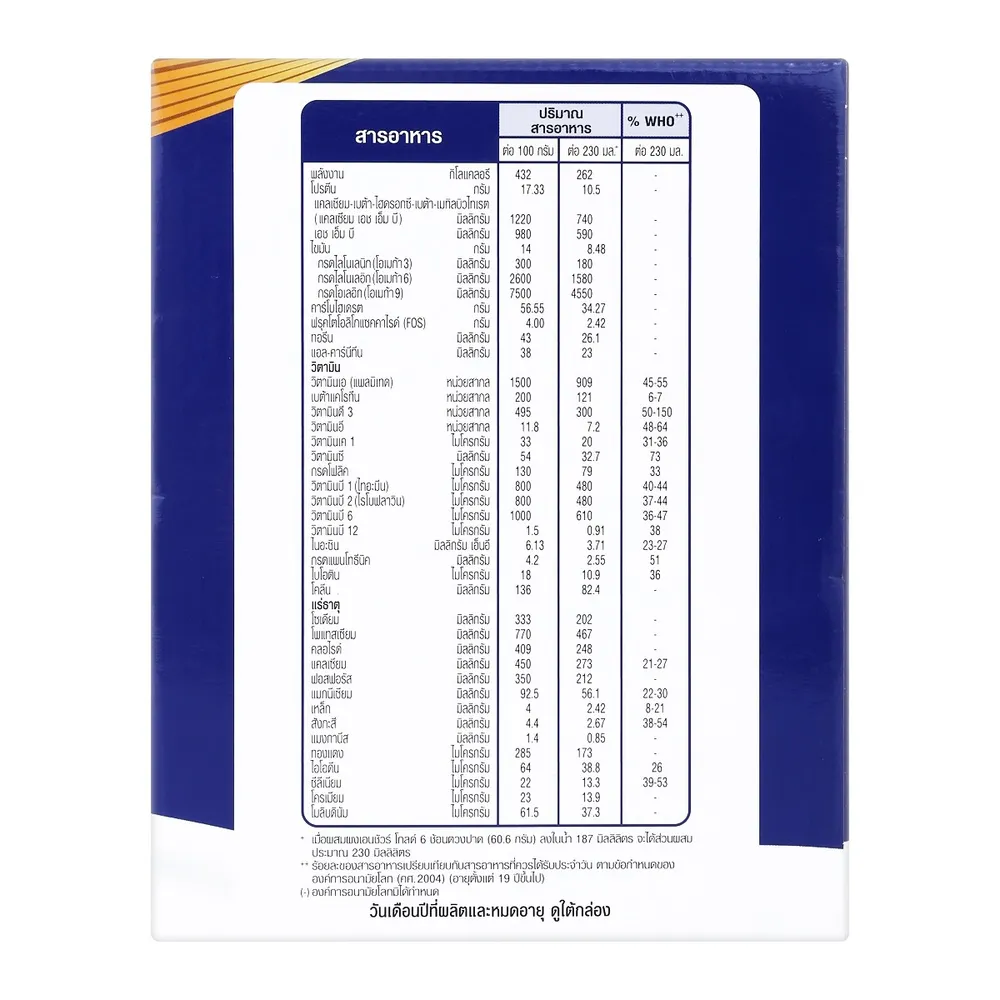- ให้พลังงาน 262 กิโลแคลอรี/230 มล. เมื่อผสมตามสูตร<br />