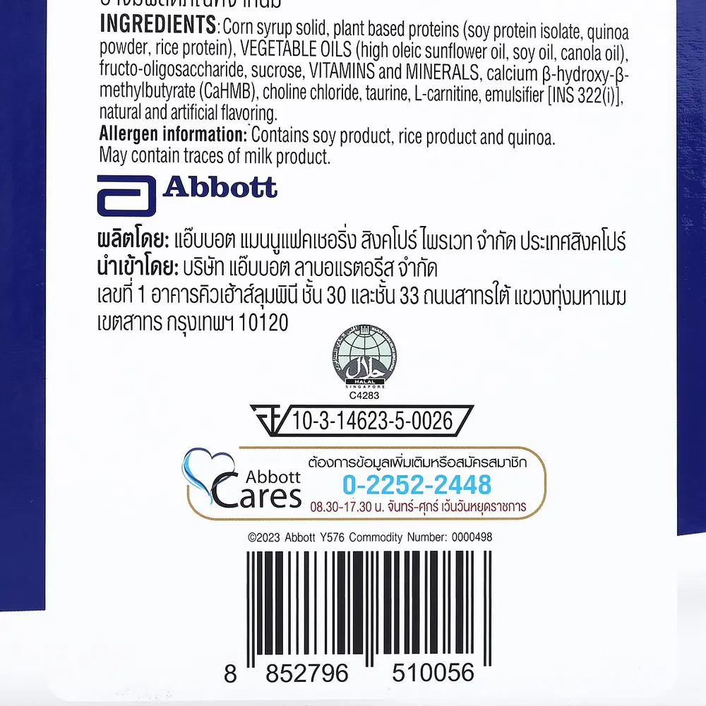 - สูตรโปรตีนคุณภาพดีที่คัดสรรจากธัญพืช 3 ชนิด คือ ถั่วเหลือง ควินัว และข้าว<br />