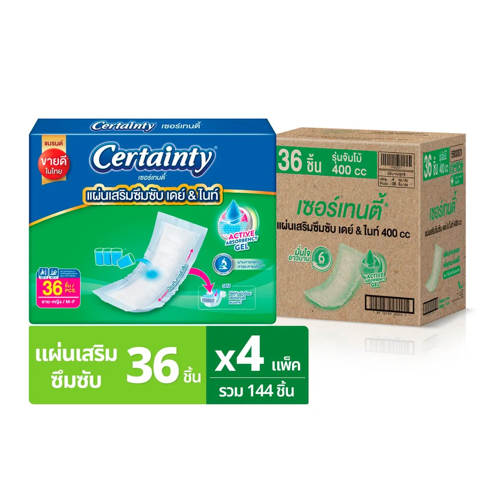 เซอร์เทนตี้ แผ่นเสริมซึมซับ 400 ซีซี 36 ชิ้น แพ็ค 4 ถุง