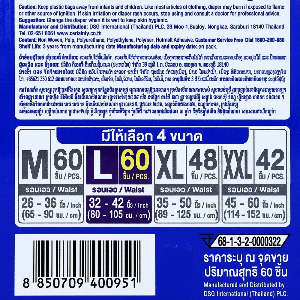 เซอร์เทนตี้ กางเกงซูเปอร์แพ้นส์ ขนาด L 20 ชิ้น x 3 แพ็ค