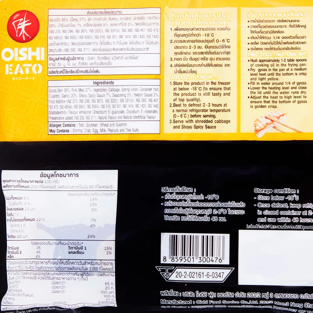โออิชิ อีทโตะ เกี๊ยวซ่าไส้หมูย่างน้ำจิ้มแจ่วโชยุแช่แข็ง 264 ก.