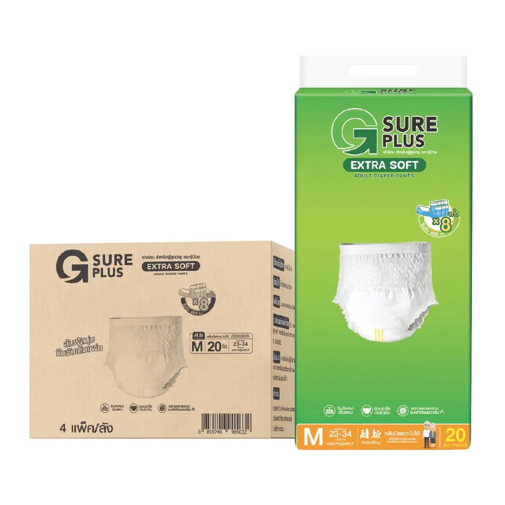 จีชัวร์ พลัส ผ้าอ้อมผู้ใหญ่ แอ็กซ์ตร้าซอฟ เพ้นท์ ไซส์ M 20 ชิ้น x 4 แพ็ค