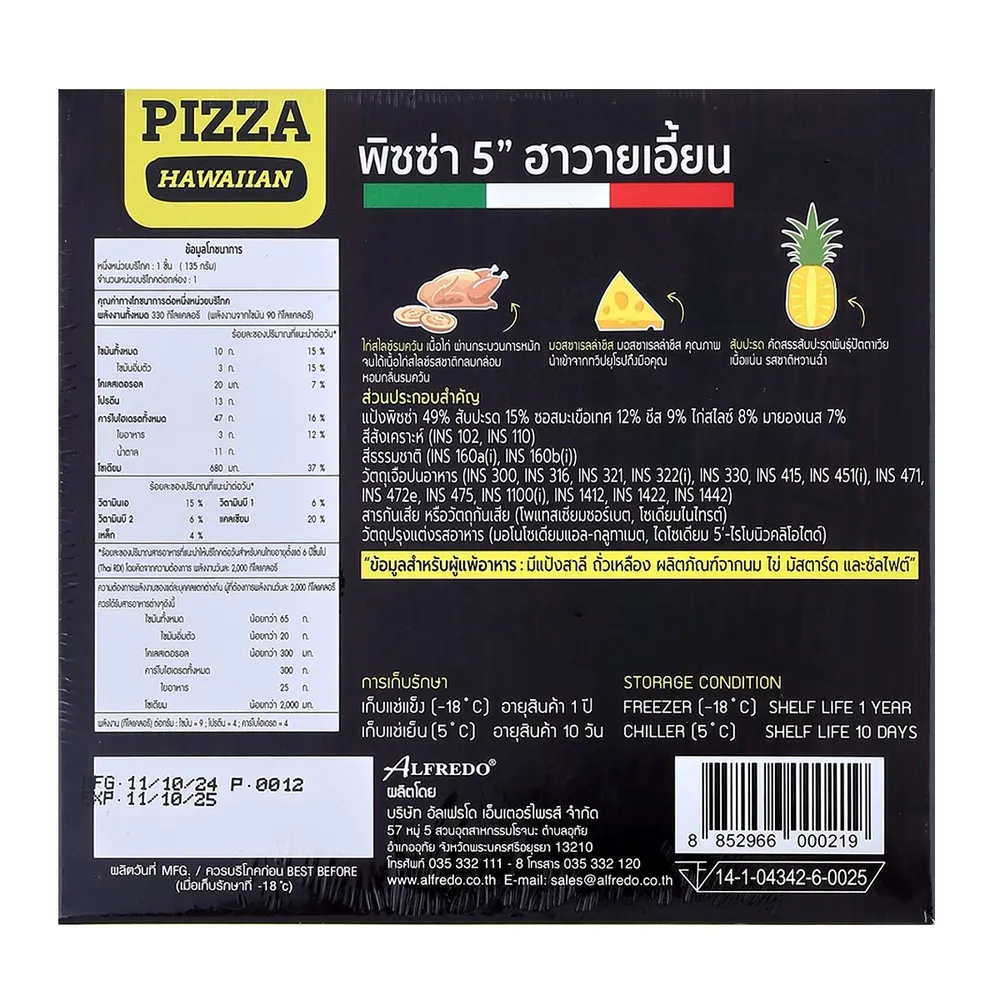 อัลเฟรโด พิซซ่า 5 นิ้ว ฮาวายเอี้ยน 135 ก.