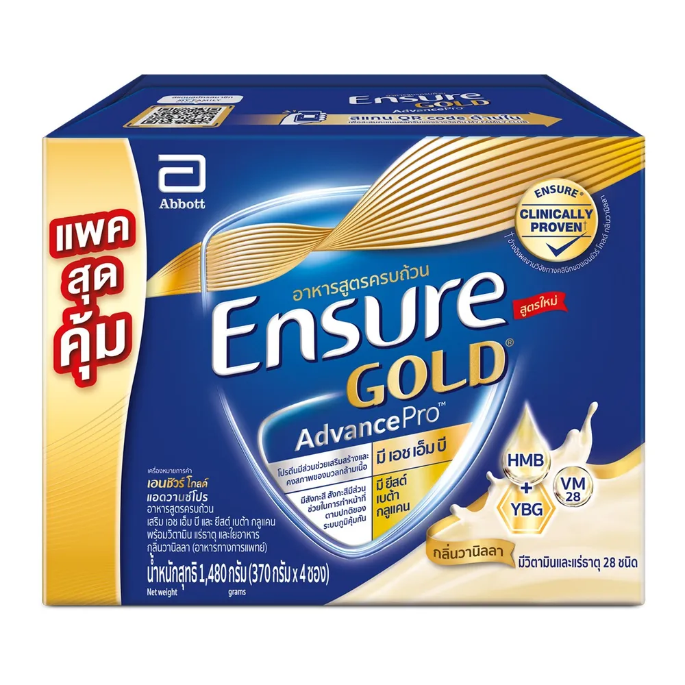 เอนชัวร์ โกลด์ อาหารสูตรครบถ้วนเสริม เอชเอ็มบี กลิ่นวานิลลา เอนชัวร์อาหารทางการแพทย์ ที่ให้สารอาหารที่ร่างกายต้องการ มีสารอาหารครบถ้วน เพื่อเสริมสร้างคุณประโยชน์ทางโภชนาการให้กับร่างกาย เหมาะสำหรับผู้สูงอายุที่มีภาวะทุพโภชนาการ หรือมีความเสี่ยงต่อการเกิดภาวะทุพโภชนาการ<br />