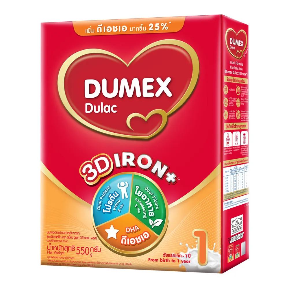 ดูเม็กซ์ สูตร 1 ดูแลค ไอรอนพลัส นมผงดัดแปลง สำหรับเด็กทารกแรกเกิด-1 ปี 550 ก.