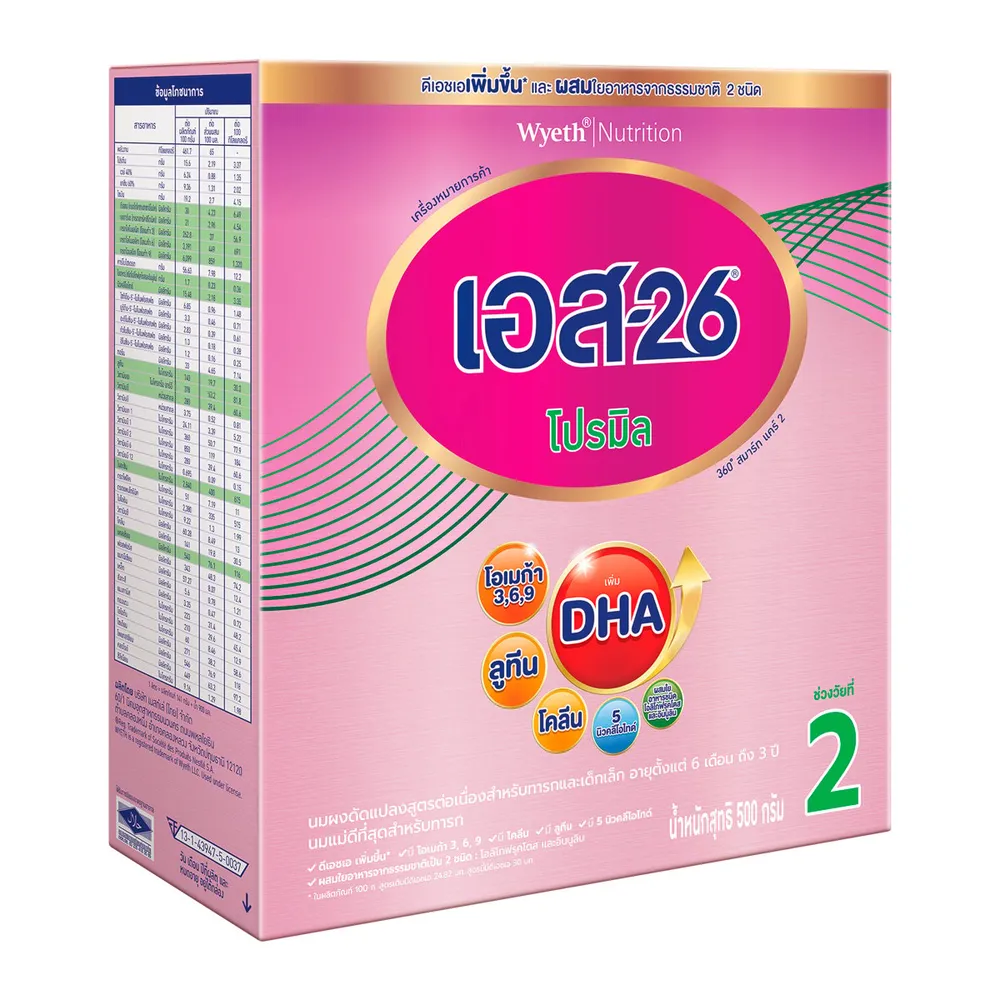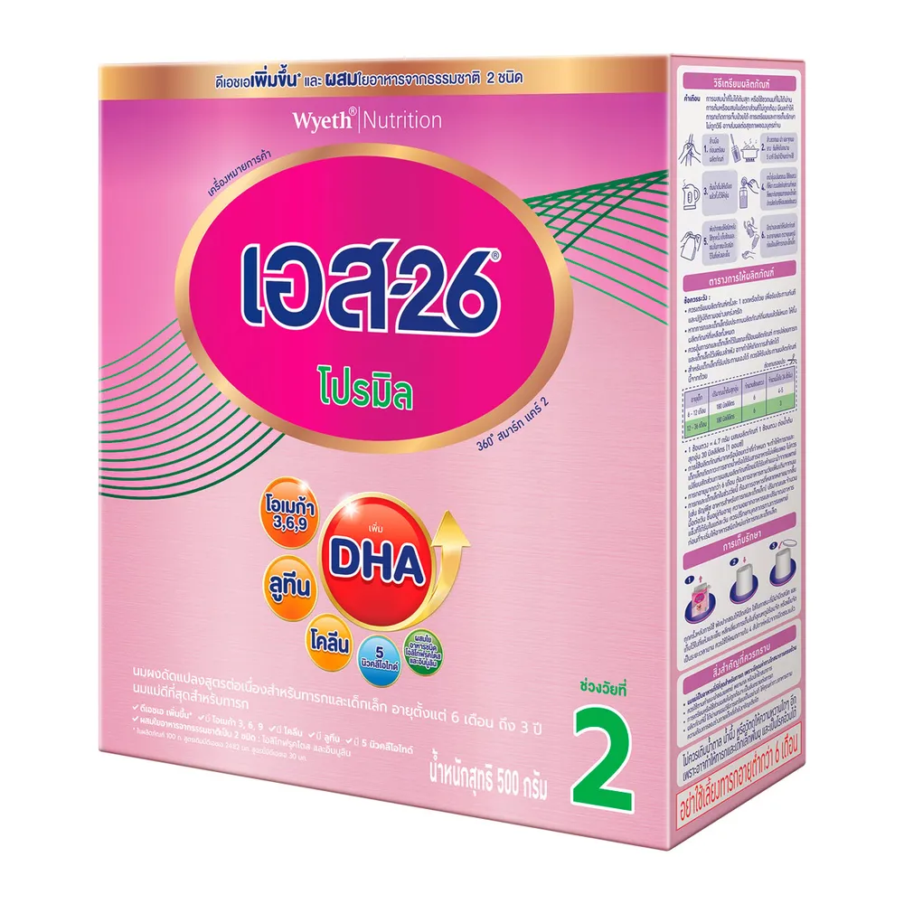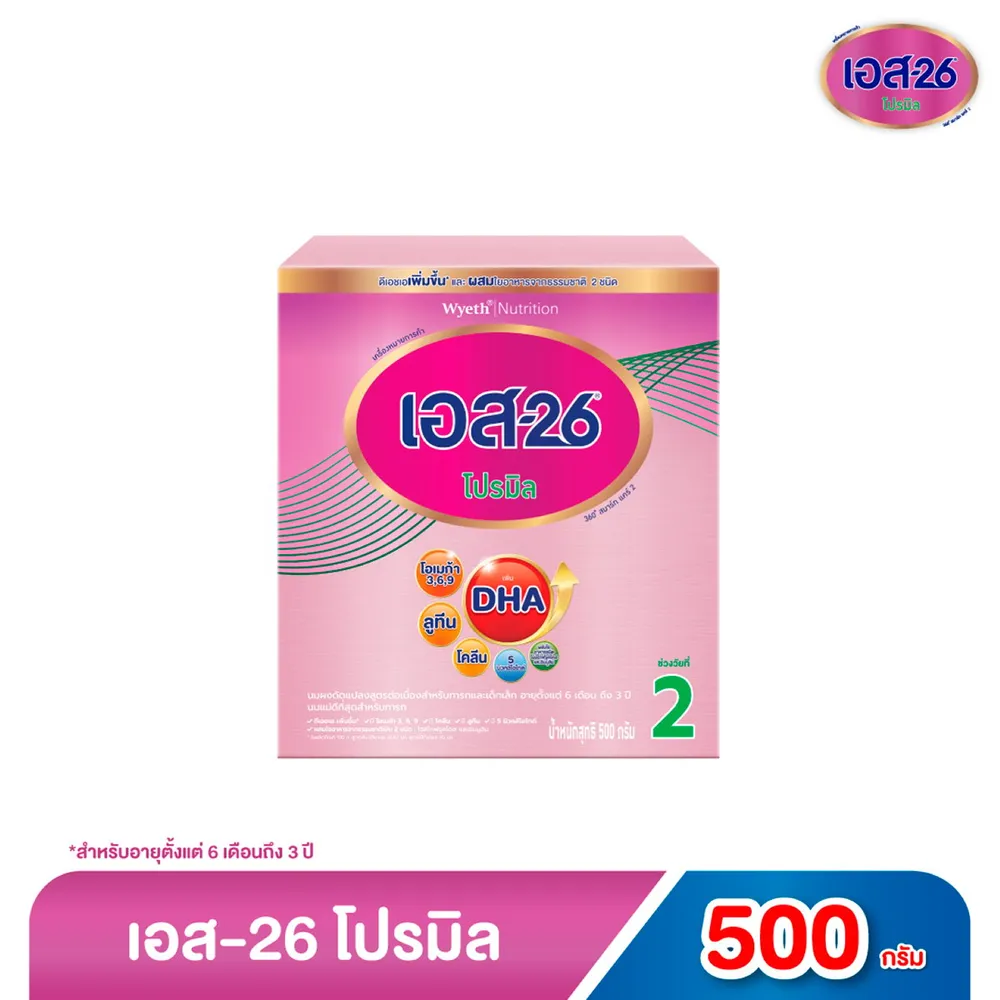 เอส-26 โปรมิล สูตร 2 นมผงดัดแปลงสูตรต่อเนื่อง 500 ก.