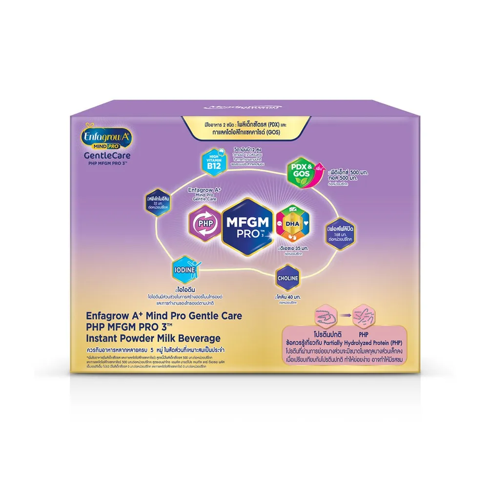 - เครื่องดื่มนมชนิดละลายทันทีจาก เอนฟาโกร เอพลัส มายด์โปร เจนเทิลแคร์ DHA+ MFGM PRO สูตร 3<br />