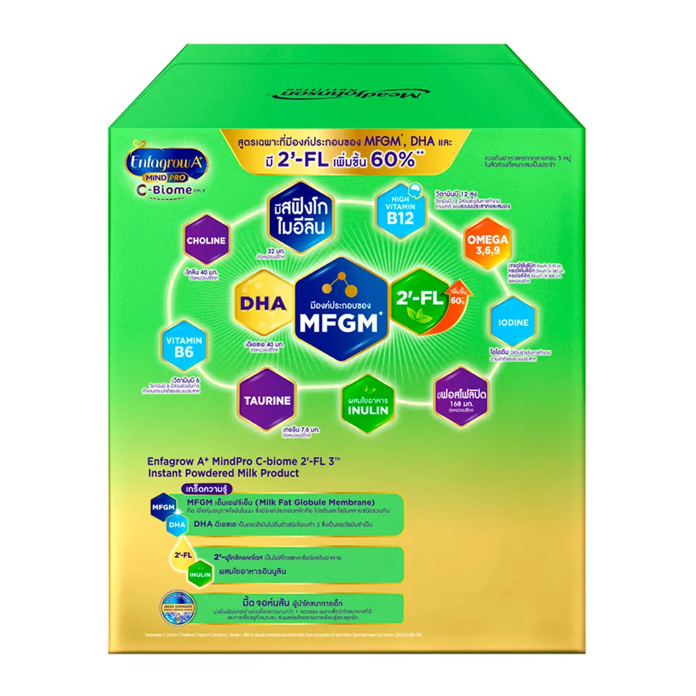 - สูตรเฉพาะที่มี MFGM* , DHA, 2&#39;-FL และมีวิตามินบี 12 ที่มีส่วนช่วยในการทำงานตามปกติของระบบประสาทและสมอง<br />
