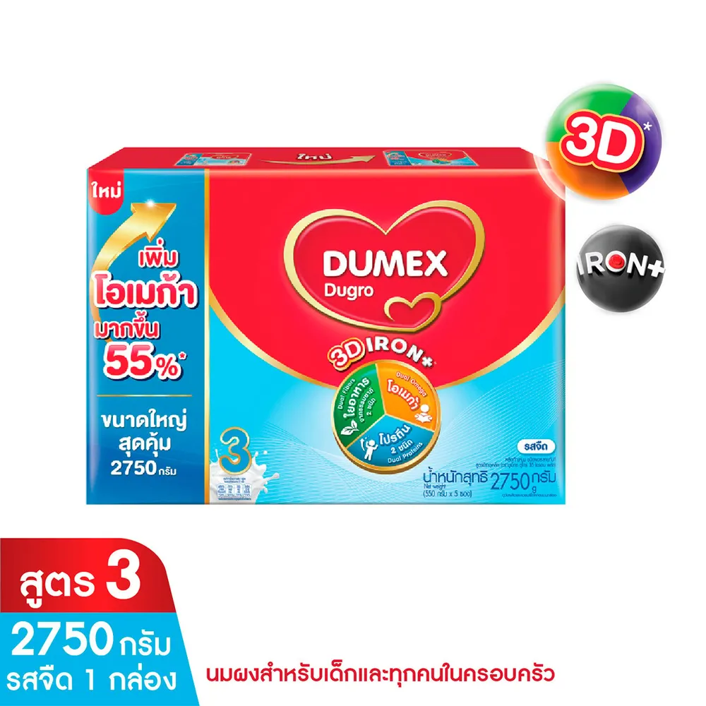 ดูเม็กซ์ ดูโกร ไอรอนแอคทีฟพลัส นมผง สูตร 3 สำหรับเด็กอายุ 1 ปีขึ้นไปและทุกคนในครอบครัว รสจืด 2750 ก.