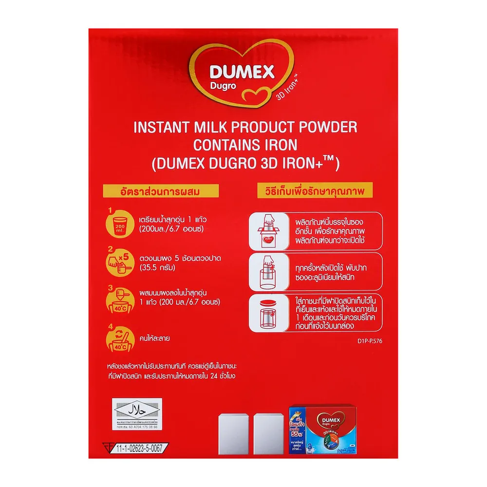 - ดูเม็กซ์ ดูโกร ผลิตภัณฑ์นมผง ชนิดละลายทันที สูตรมีธาตุเหล็ก ช่วงวัยที่ 3 รสจืด<br />