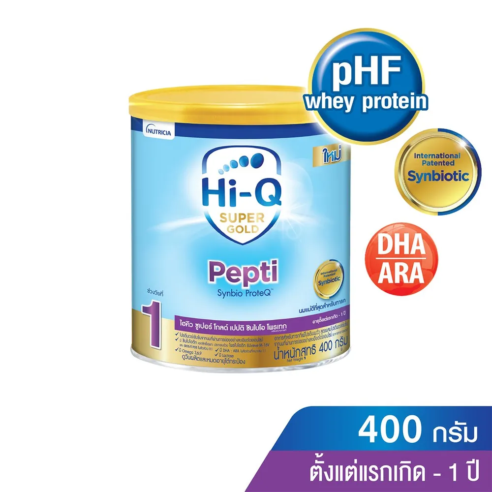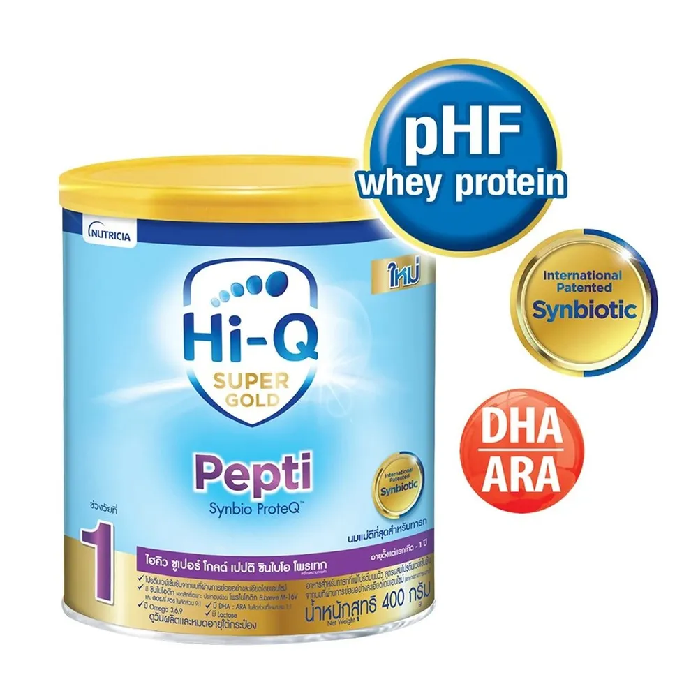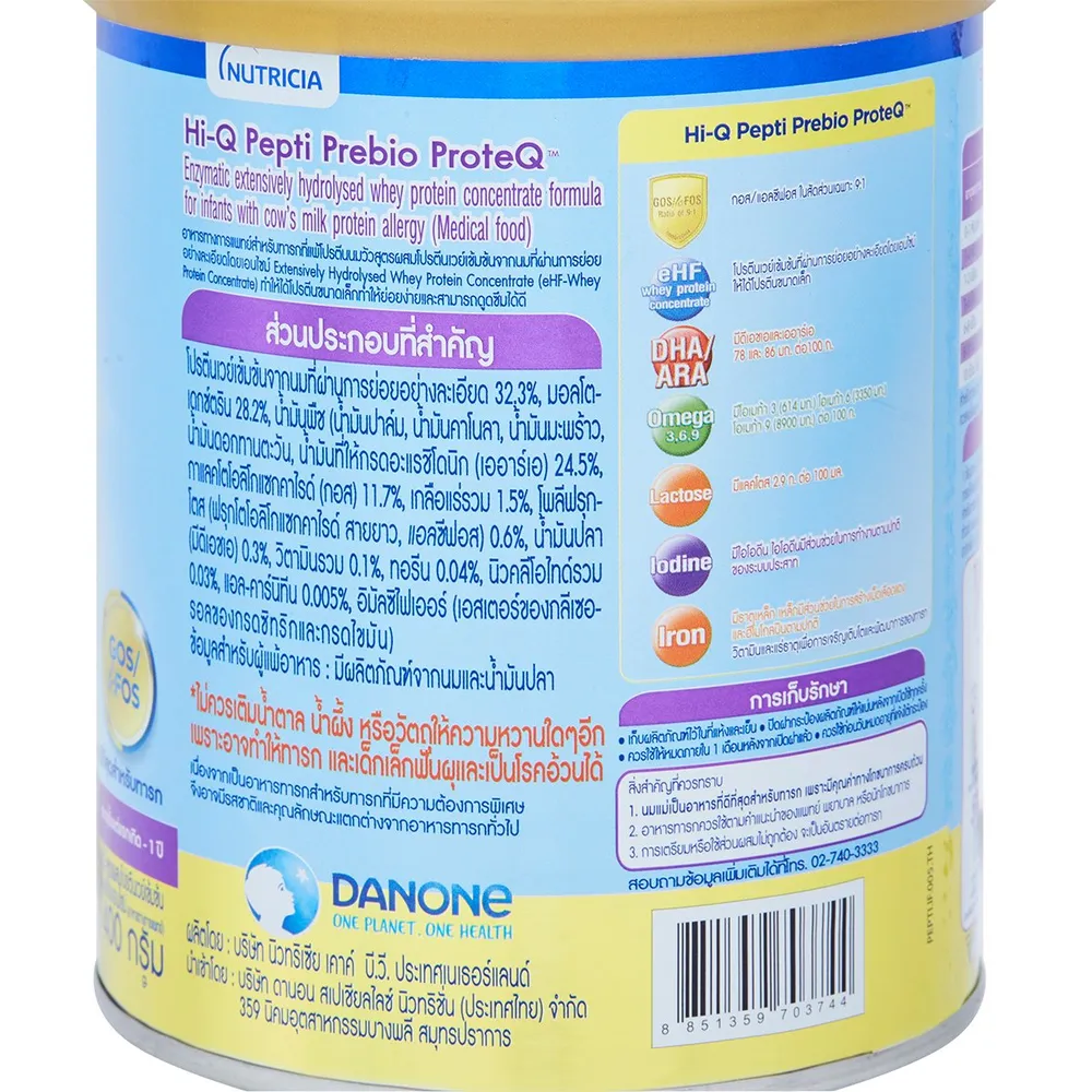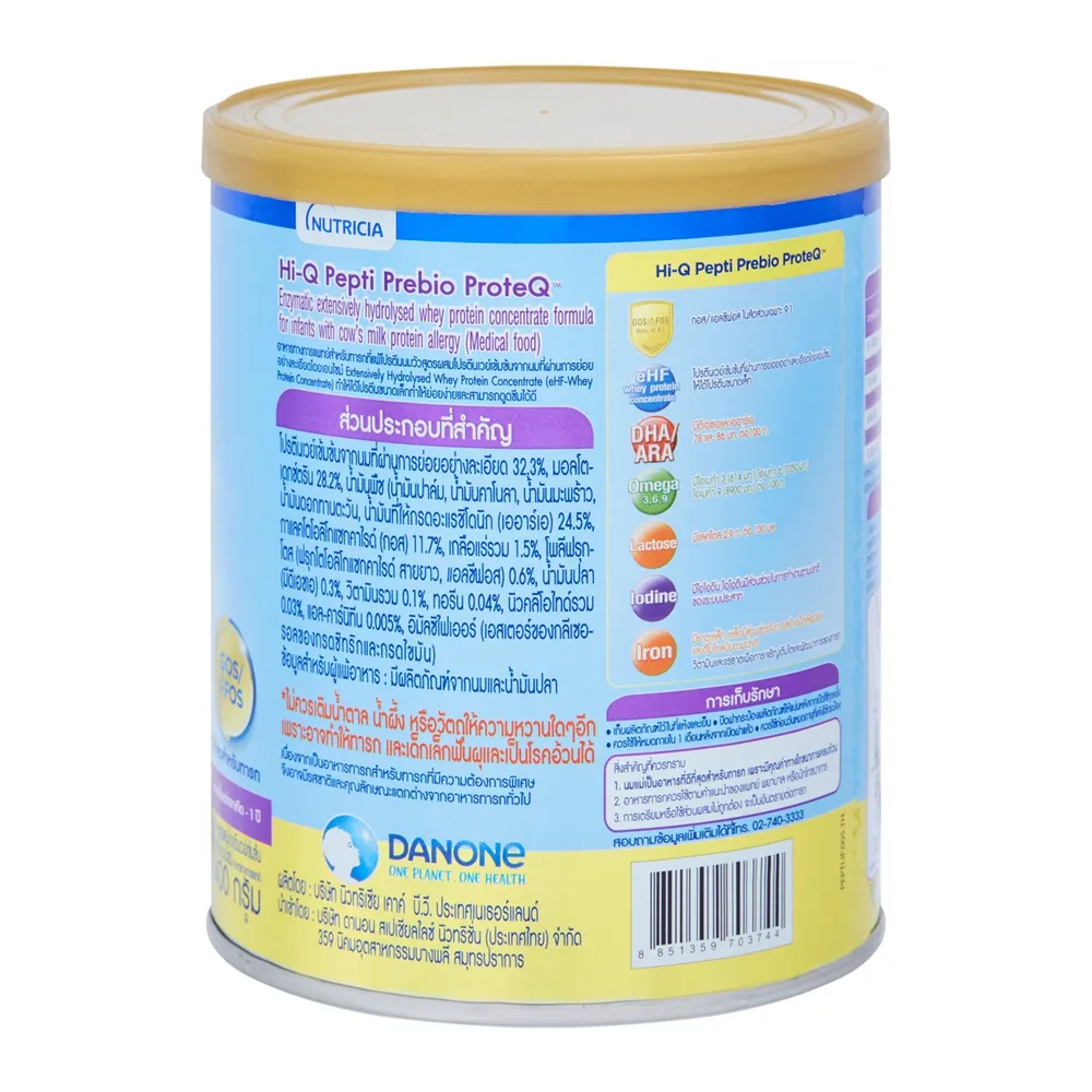 ไฮคิว เปปติ พรีไบโอโพรเทก อาหารทางการแพทย์สำหรับทารกที่แพ้โปรตีนนมวัวสูตรผสมโปรตีนเวย์เข้มข้นจากนมที่ผ่านการย่อยอย่างละเอียดโดยเอนไซม์ทำให้ได้โปรตีนขนาดเล็ก ทำให้ย่อยง่ายและสามารถดูดซึมได้ดี ผสม patented GOS/lcFOS ratio of 9:1 combination ซึ่งเป็นเอกสิทธิ์เฉพาะพร้อมสารอาหารที่จำเป็นต่อการเจริญเติบโตและพัฒนาการของทารก<br />