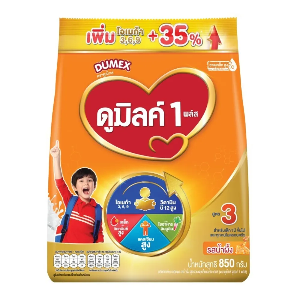 ดูเม็กซ์ ดูมิลค์ 1 พลัส ผลิตภัณฑ์นมผง รสน้ำผึ้ง สูตรมีธาตุเหล็กและวิตามินซี สูตร 3 ขนาด 850 ก.