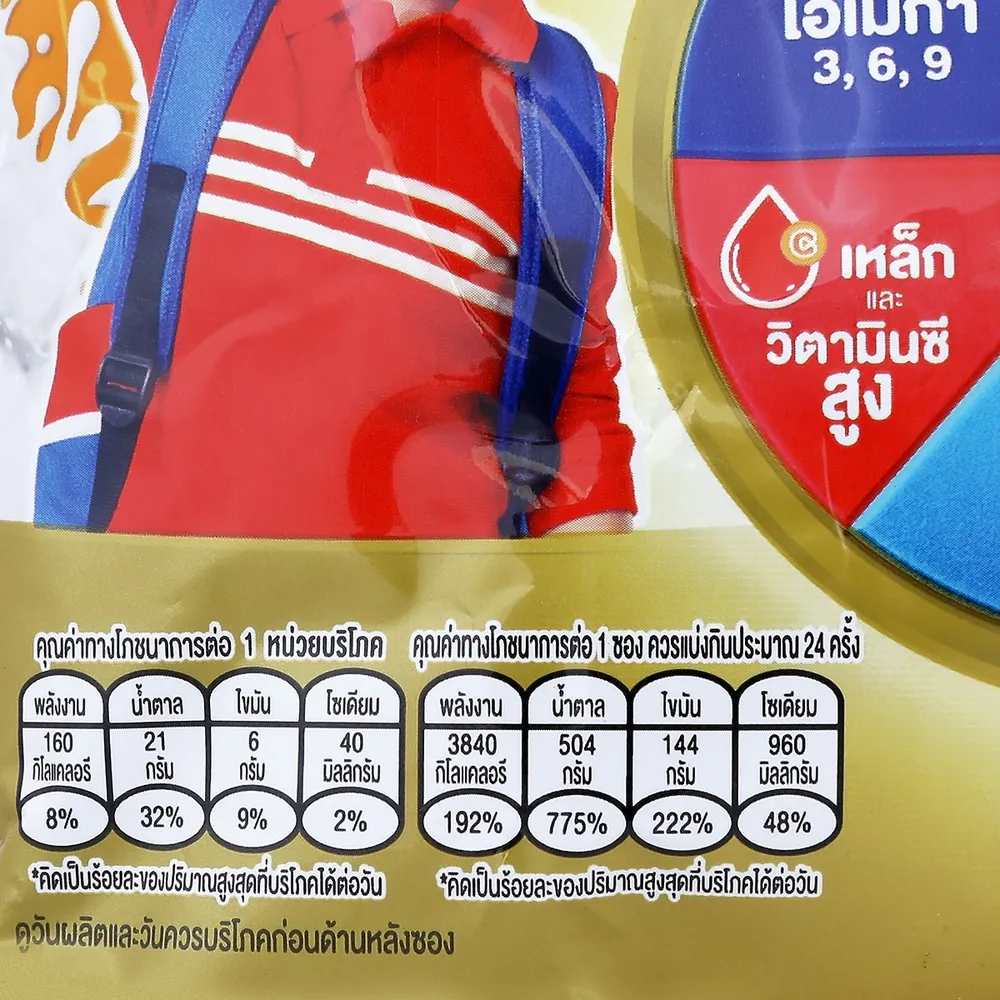 - มีวิตามินและเกลือแร่หลากหลายชนิดสำหรับเด็กวัยกำลังโต ได้แก่ แคลเซียม, วิตามินดีสูง, ฟอสฟอรัส, วิตามินบี 12, ดีเอชเอ และโอเมก้า 3,6,9, วิตามินซีและอี, ธาตุเหล็ก, วิตามินเอ, ผสมใยอาหารอินนูลิน<br />