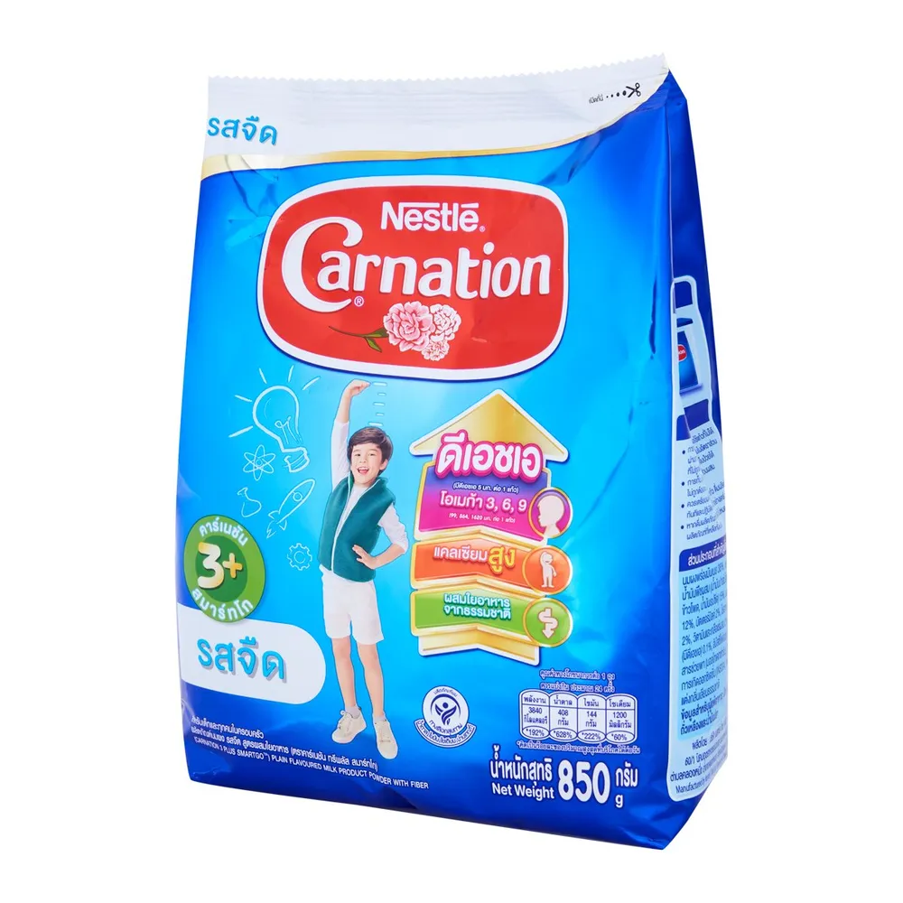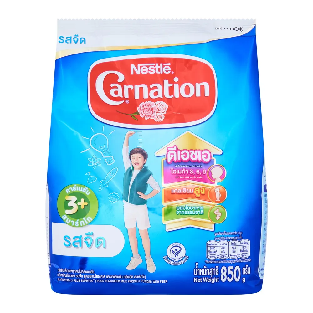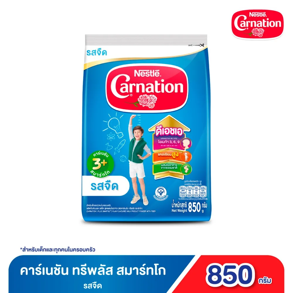 - นมผง คาร์เนชัน 3+ สมาร์ทโก เหมาะสำหรับเด็กอายุ 3 ปีขึ้นไปและทุกคนในครอบครัว<br />