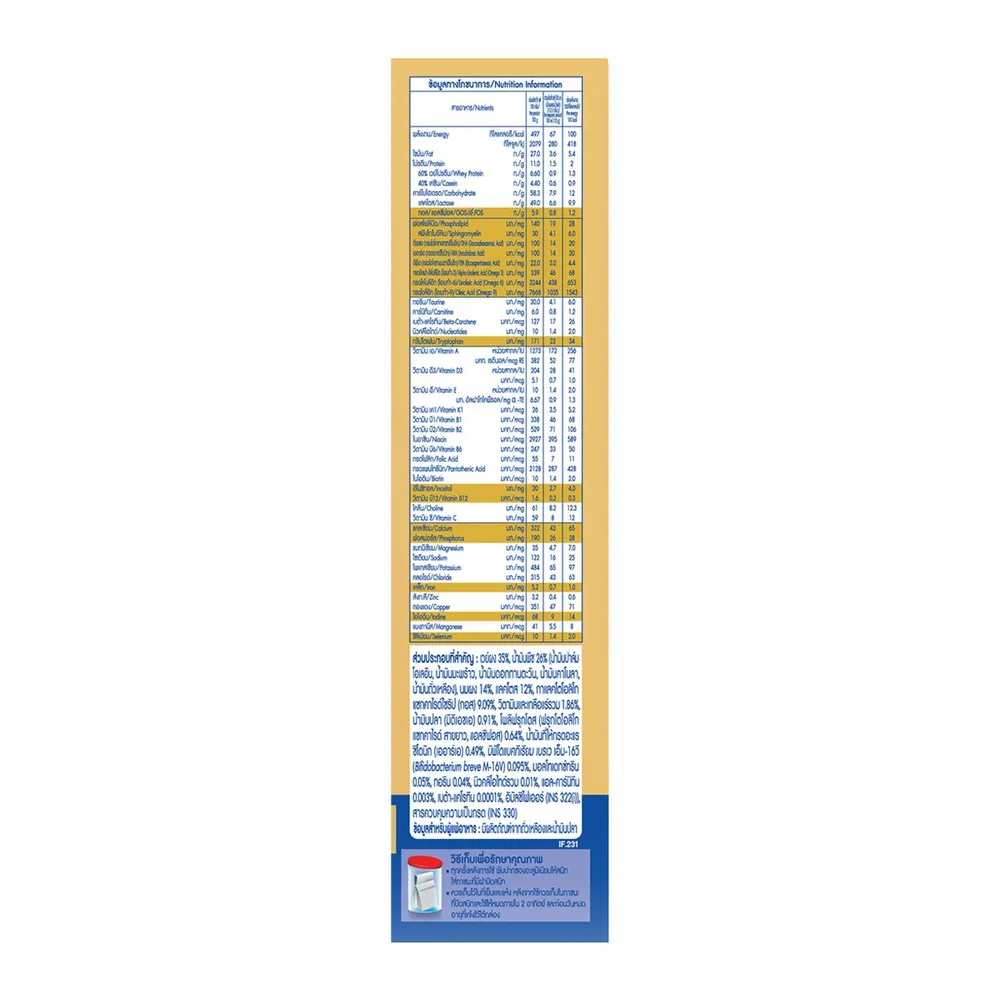 - ผลิตภัณฑ์ชนิดนี้ควรเตรียม เก็บรักษา และใช้อย่างระมัดระวังเพื่อความปลอดภัยของทารก<br />