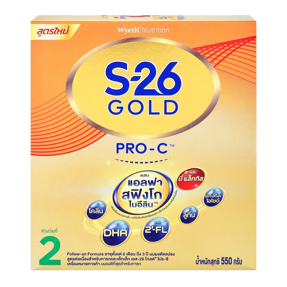 เอส-26 โกลด์ โปร-ซี นมผงดัดแปลงสูตรต่อเนื่องสำหรับทารกและเด็กเล็ก ช่วงวัยที่ 2 ขนาด 550 ก.