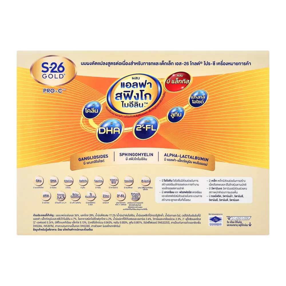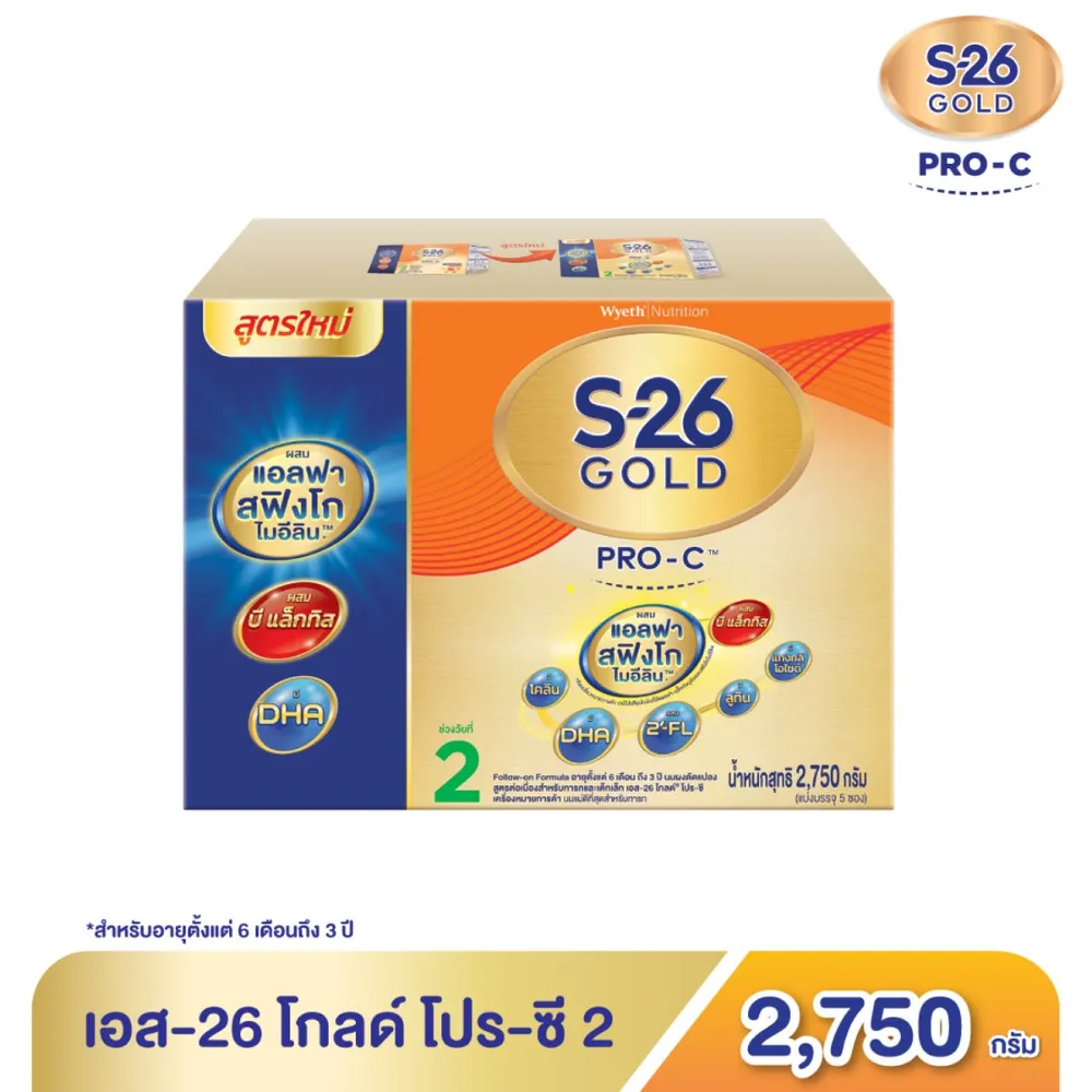 เอส-26 โกลด์ โปร-ซี นมผงดัดแปลงสูตรต่อเนื่องสำหรับทารกและเด็กเล็ก ช่วงวัยที่ 2 ขนาด 2750 ก.