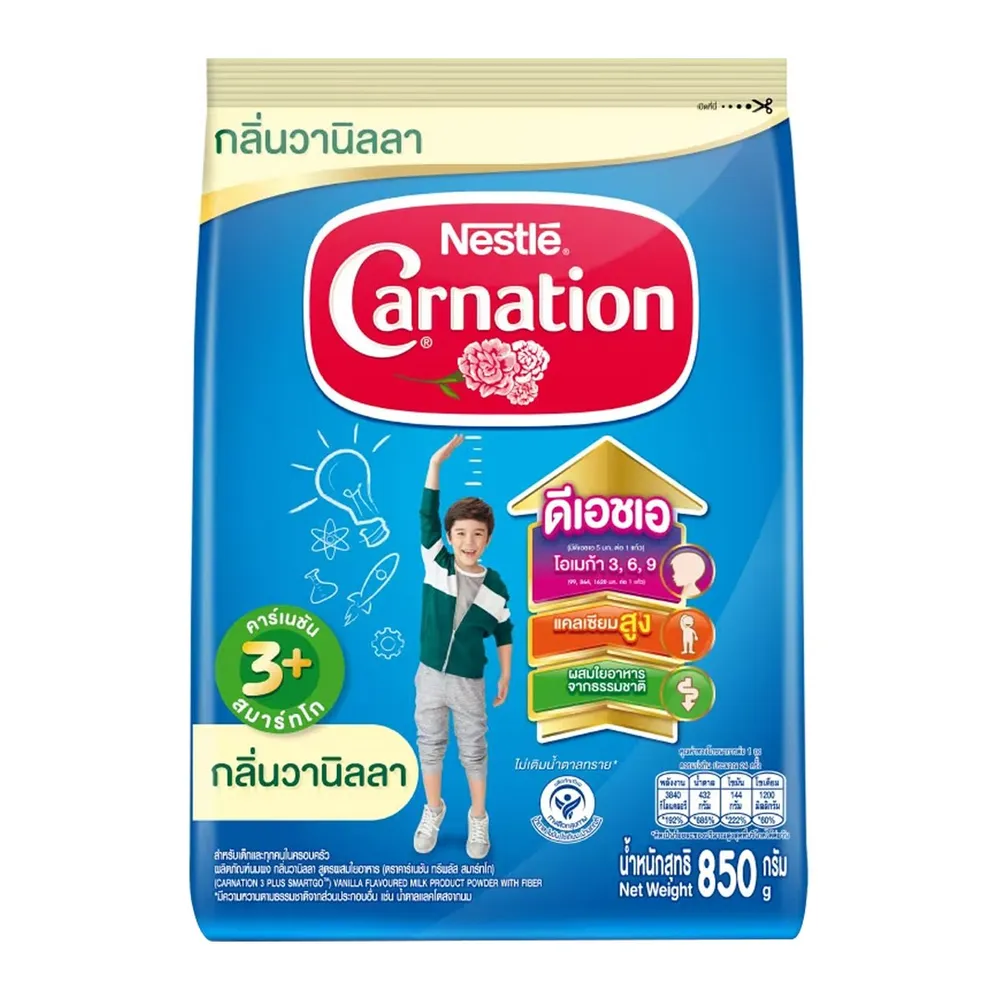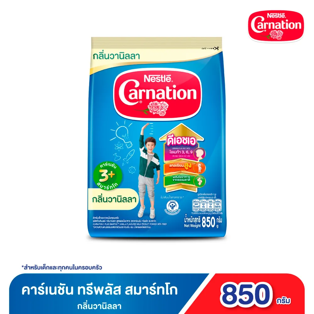 คาร์เนชัน 3+ สมาร์ทโก ผลิตภัณฑ์นมผง สูตร 4 กลิ่นวานิลลา 850 ก.