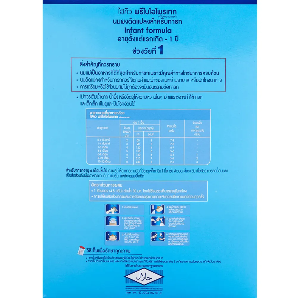<p>ไฮคิว พรีไบโอโพรเทก นมผงดัดแปลงสูตรต่อเนื่องสำหรับทารก ช่วงวัยที่ 1<br />