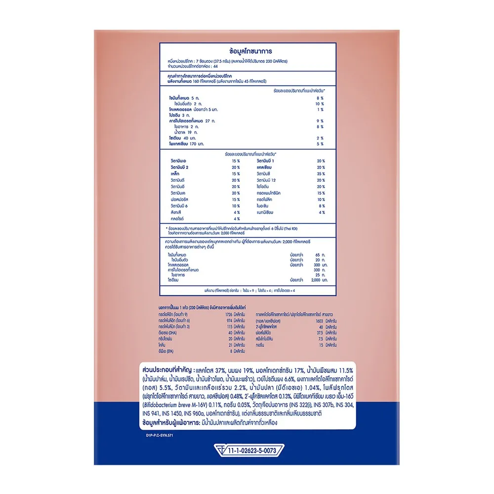 - ผลิตภัณฑ์นมสูตรเติมจุลินทรีย์โพรไบโอติก บิฟิโดแบคทีเรียม เบรเว เอ็ม-16วี (เครื่องหมายการค้า ไฮคิว พลัส ซูเปอร์โกลด์ พลัส-ซี ซินไบโอพลัส ดีเอชเอ โอเมก้า 3,6,9 วิตามินบี 12 3)<br />