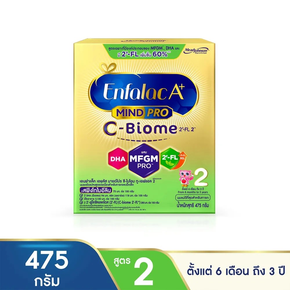 เอนฟาแล็ค เอพลัส ซีไบโอม สูตร 2 นมผงดัดแปลงสูตรต่อเนื่องสำหรับทารกและเด็กเล็ก ชนิดจืด 475 ก.