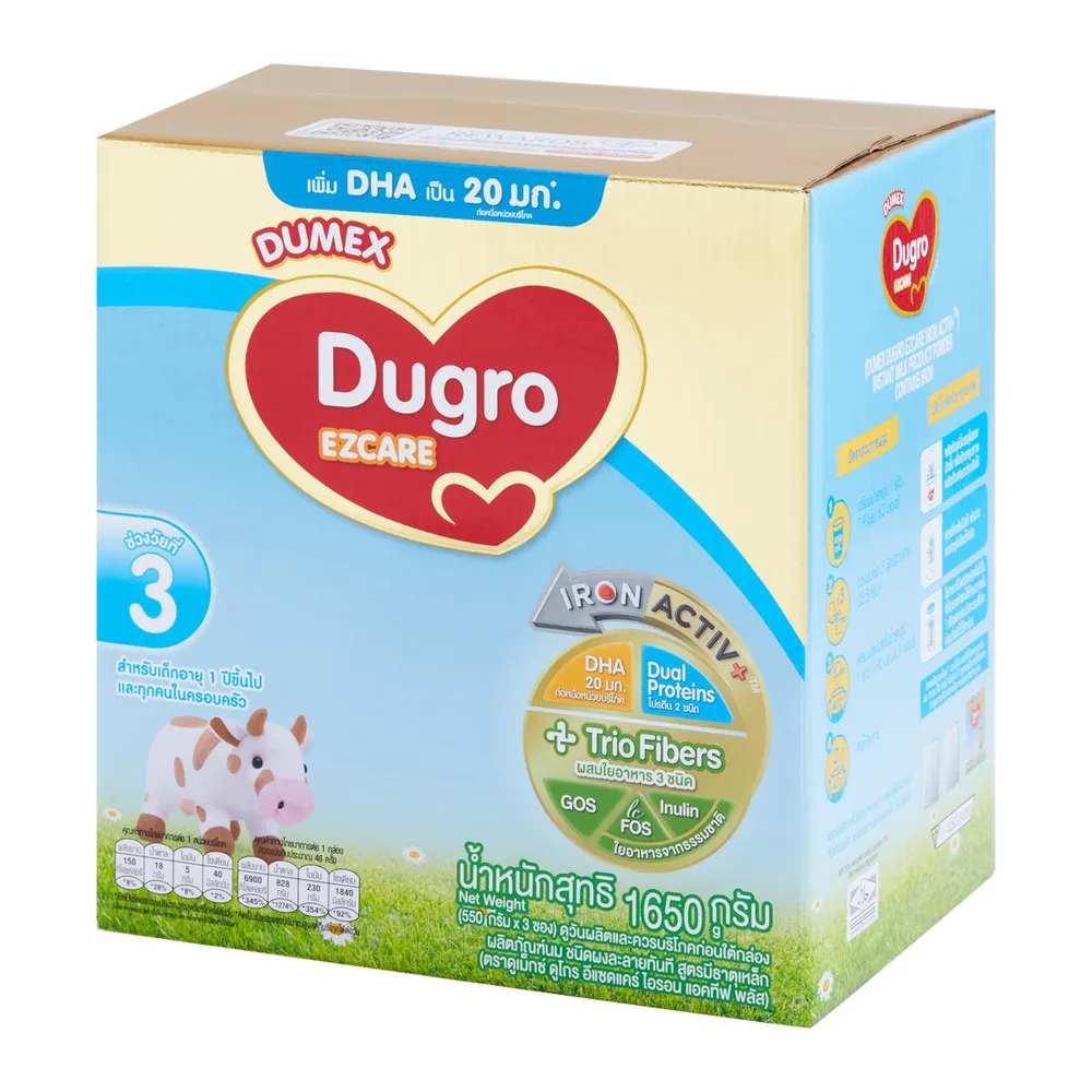 ให้เด็กๆ ได้อิ่มอร่อยและเจริญเติบโตด้วย ดูเม็กซ์ ดูโกร อีแซดแคร์ ผลิตภัณฑ์นมผง ชนิดละลายทันที สูตร 3 ผลิตภัณฑ์นมผงดัดแปลงต่อเนื่อง ที่ผลิตจากตามหลักการโภชนาการสำหรับร่างกายของเด็ก เพื่อให้ได้รับสารอาหารเพื่อการเจริญเติบโตที่สมบูรณ์<br />