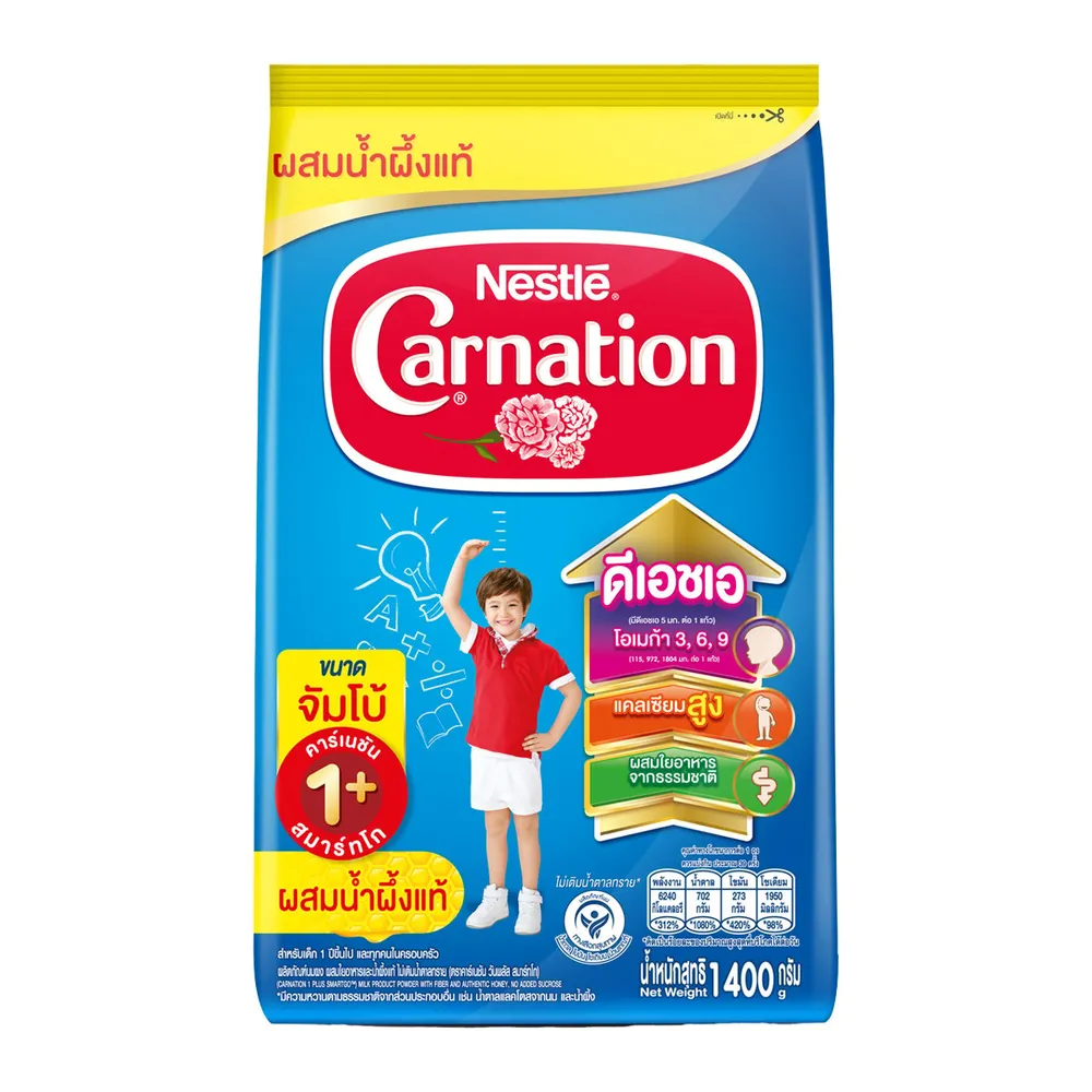 คาร์เนชัน 1+ สมาร์ทโก ผลิตภัณฑ์นมผง สูตร 3 รสน้ำผึ้ง 1400 ก.