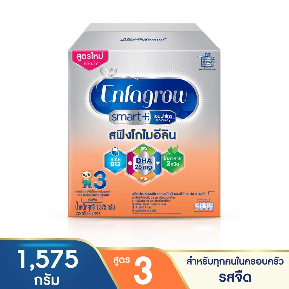 เอนฟาโกร สมาร์ทพลัส นมผง สูตร 3 สำหรับเด็กอายุ 1 ปีขึ้นไปและทุกคนในครอบครัว 1575 ก.