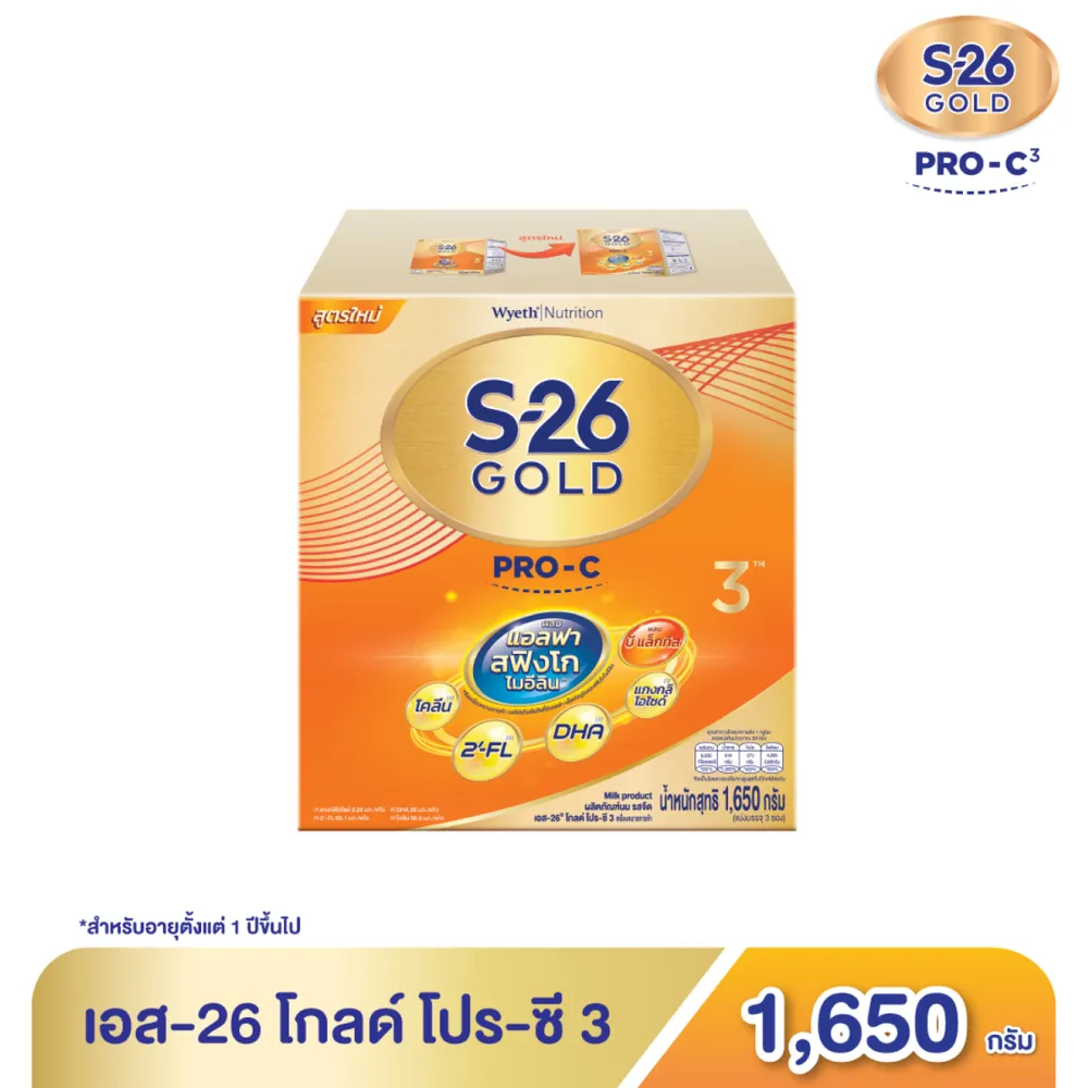 เอส-26 โกลด์ โปร-ซี ผลิตภัณฑ์นม รสจืด สูตร 3 1650 ก.