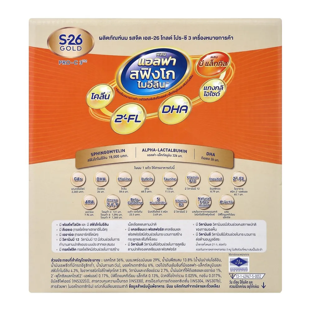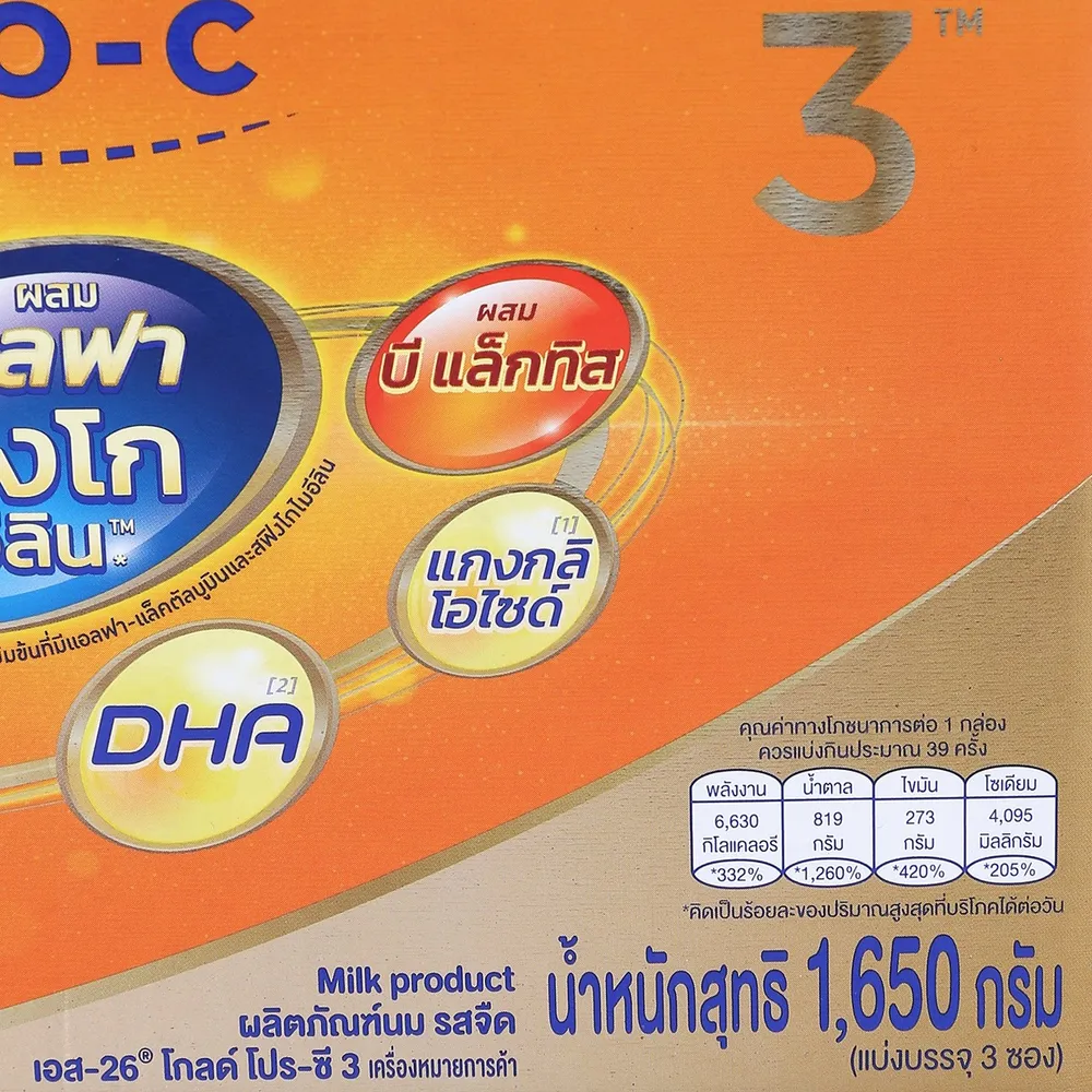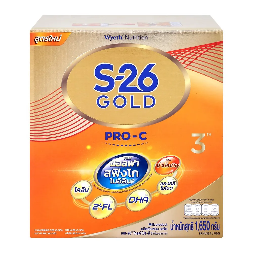 - เอส-26 โกลด์ โปร-ซี ผลิตภัณฑ์นมวัว รสจืด สูตร 3<br />