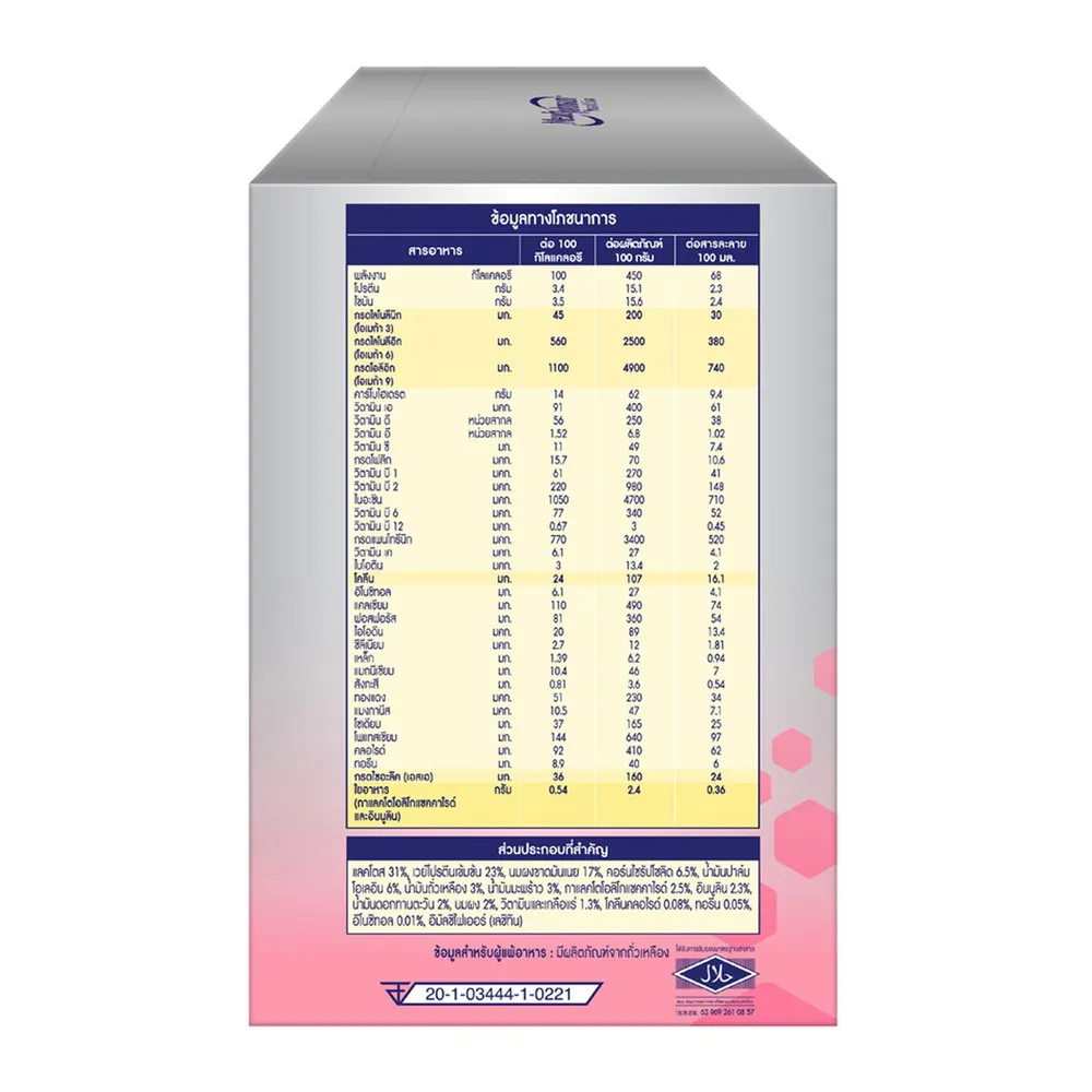 - ผสมใยอาหารสองชนิด คือกาแลคโตโอลิโกแซคคาไรด์ (GOS) และอินนูลิน (Inulin)<br />