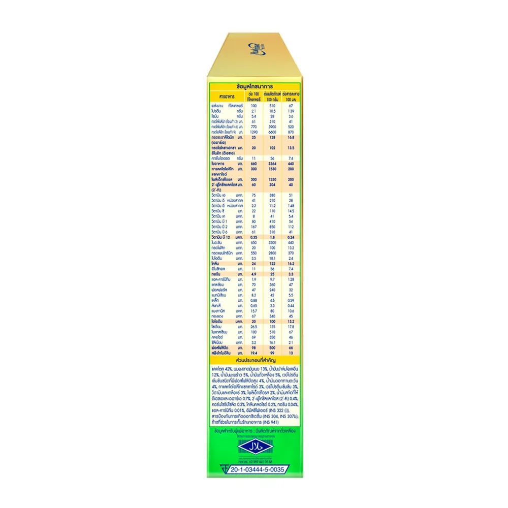 - ผสมใยอาหาร 3 ชนิด มี 2&#39;-ฟูโคซิลแลคโตส (2&#39;-FL) เป็นโอลิโกแซคคาไรด์และใยอาหาร 304 มก. ต่อ 100 กรัม, โพลีเด็กซ์โตรส (PDX), กาแลคโตโอลิโกแซคคาไรด์ (GOS) ช่วยในการทำงานของแบคทีเรียชนิดดีในลำไส้ และปรับลักษณะอุจจาระให้นิ่มขึ้น<br />