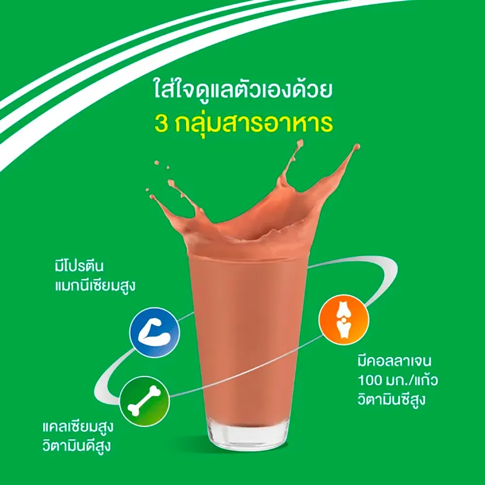- ใส่ใจตัวเองด้วย 3 กลุ่มสารอาหาร มีโปรตีน แมกนีเซียมสูง แคลเซียมสูง วิตามินดีสูง มีคอลลาเจน 100 มก./แก้ว วิตามินซีสูง<br />