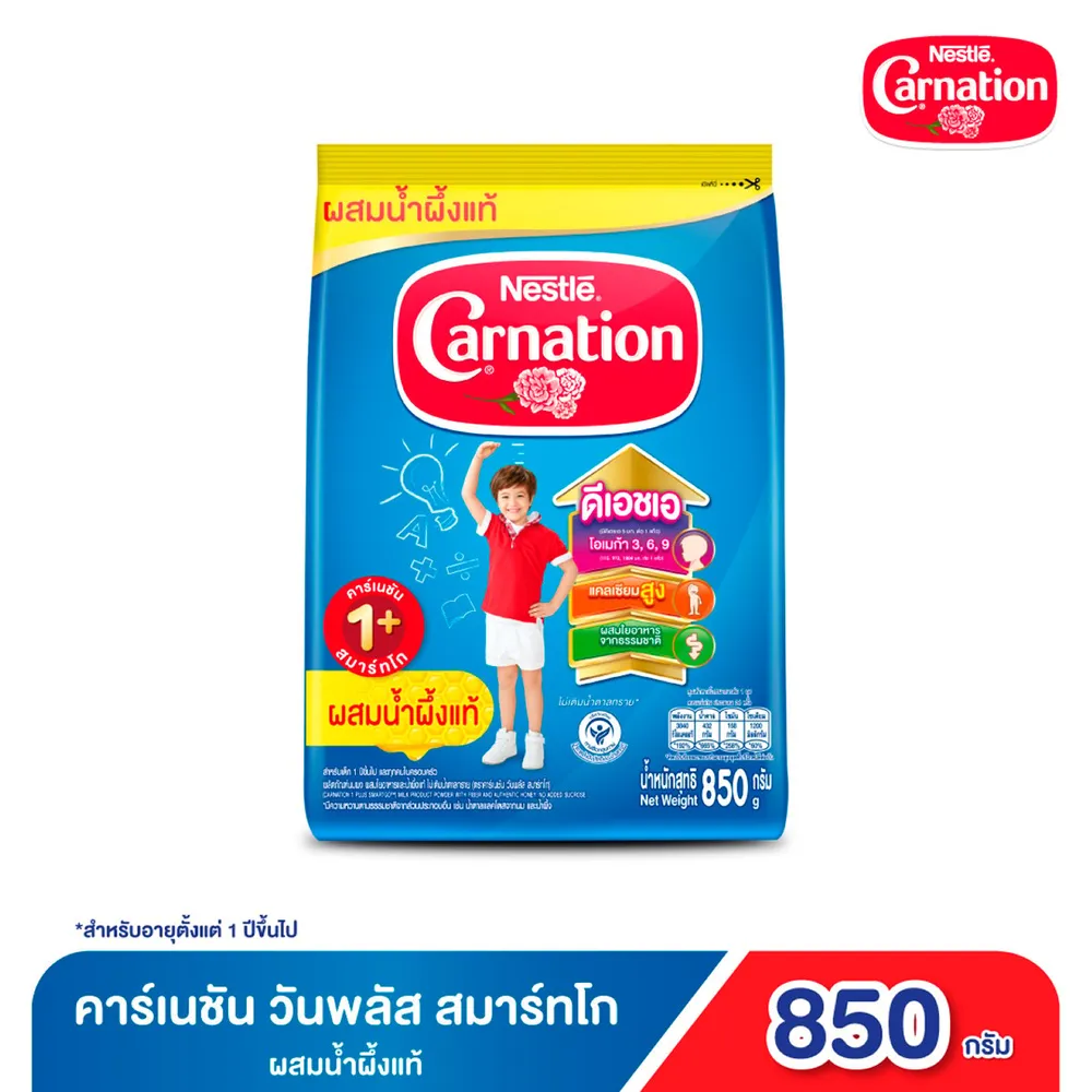 การเจริญเติบโตของลูกน้อยเป็นสิ่งสำคัญ วางใจให้คาร์เนชัน 1 พลัส สมาร์ทโก ผลิตภัณฑ์นมผง สูตร 3 ได้ดูแลลูกรักของคุณ เป็นผลิตภัณฑ์นมผงที่มีสารอาหารที่หลากหลาย เพื่อให้ลูกน้อยเติบโต และแข็งแรงอย่างสมวัย<br />