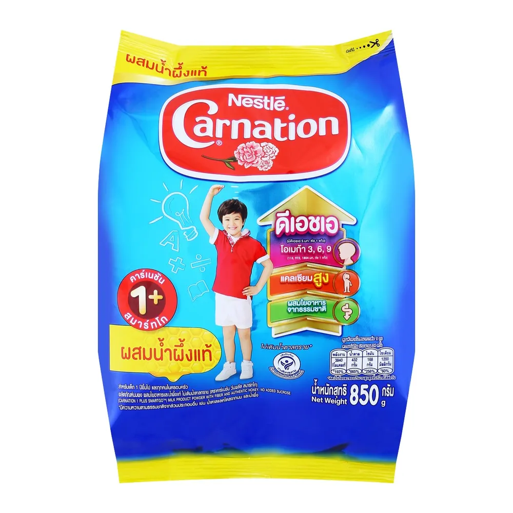 <p>คาร์เนชัน 1+ สมาร์ทโก ผลิตภัณฑ์นมผง สูตร 3 สำหรับเด็กอายุ 1 ปีขึ้นไปและทุกคนในครอบครัว<br />