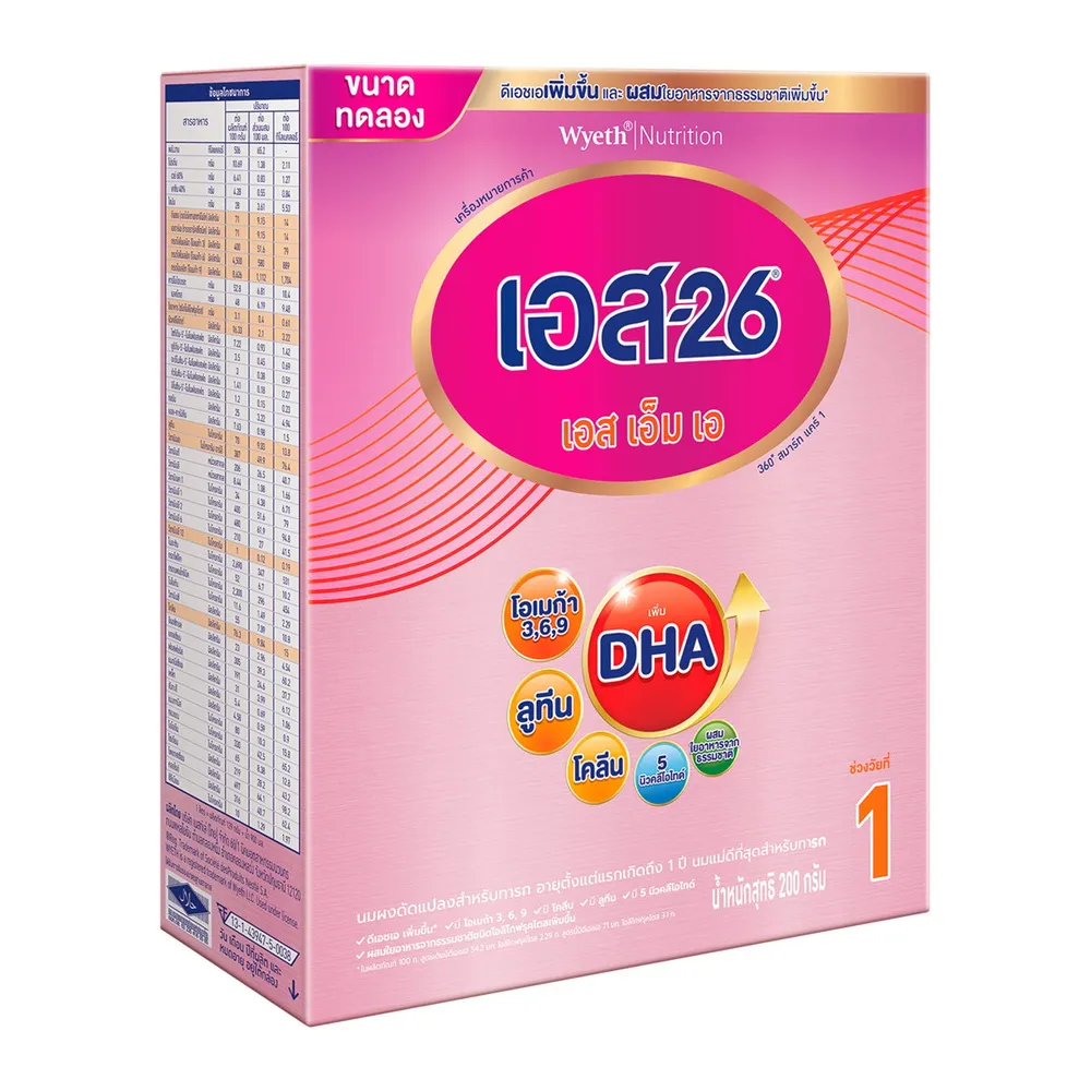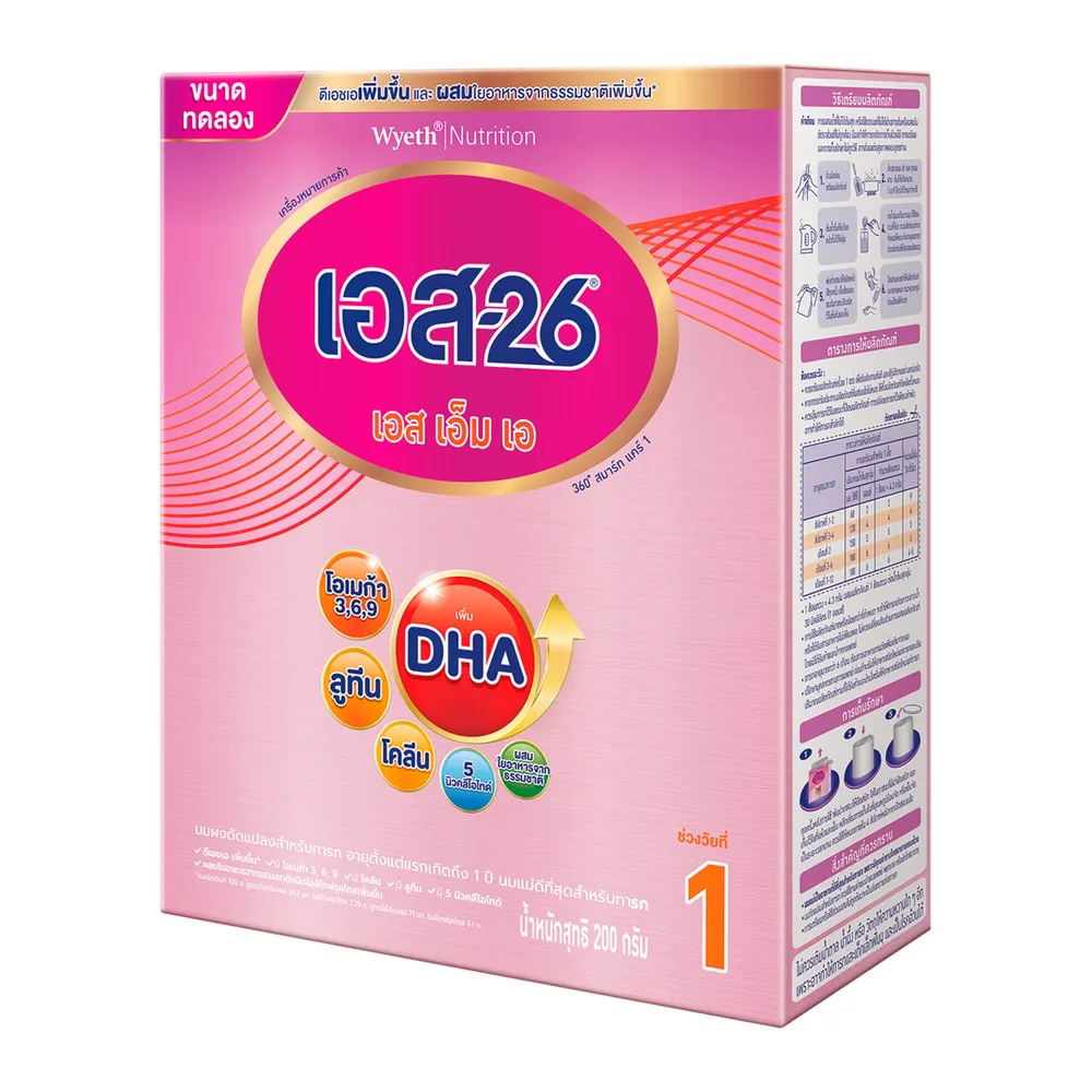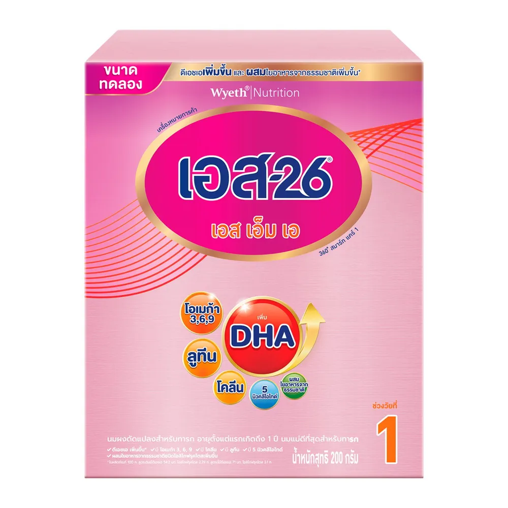 เอส-26 เอสเอ็มเอ 360 สมาร์ท แคร์ 1 นมผงดัดแปลงสำหรับทารก 200 ก.