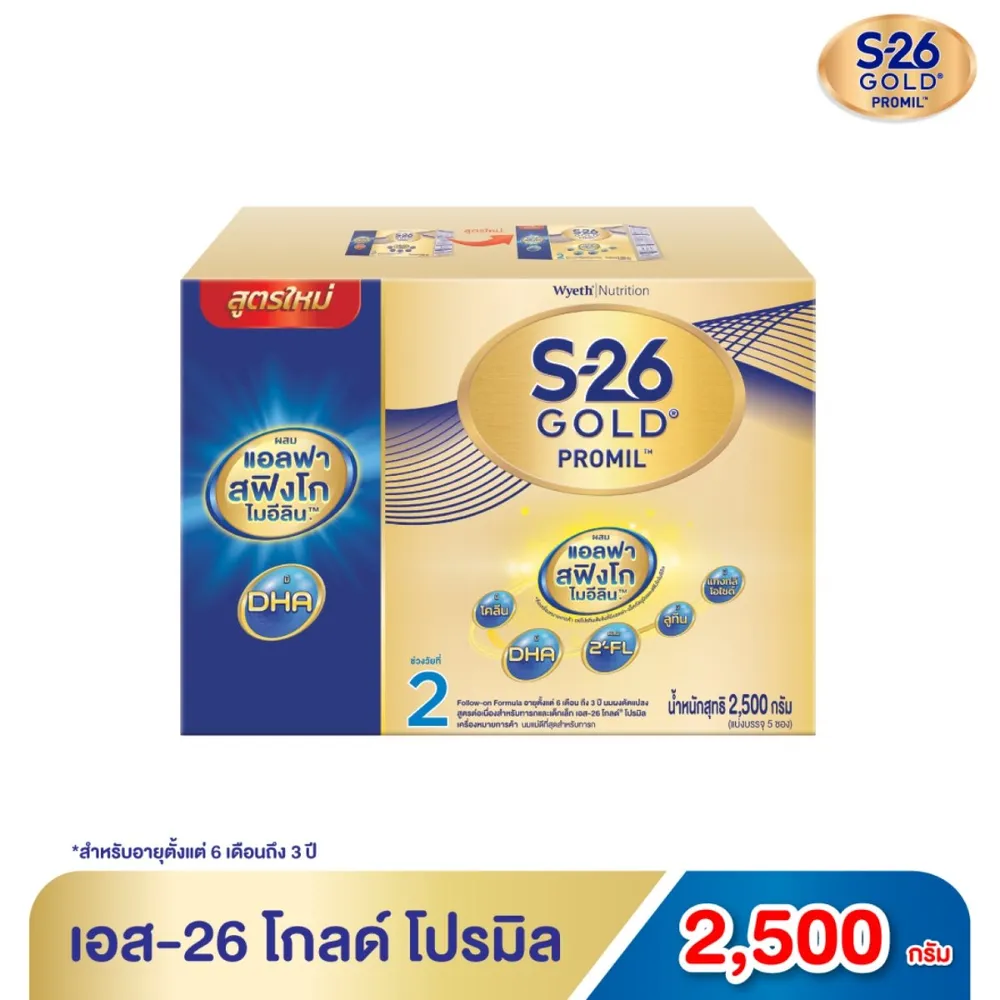 เอส-26 โกลด์ โปรมิล สูตร 2 นมผงดัดแปลงสูตรต่อเนื่อง 2500 ก.